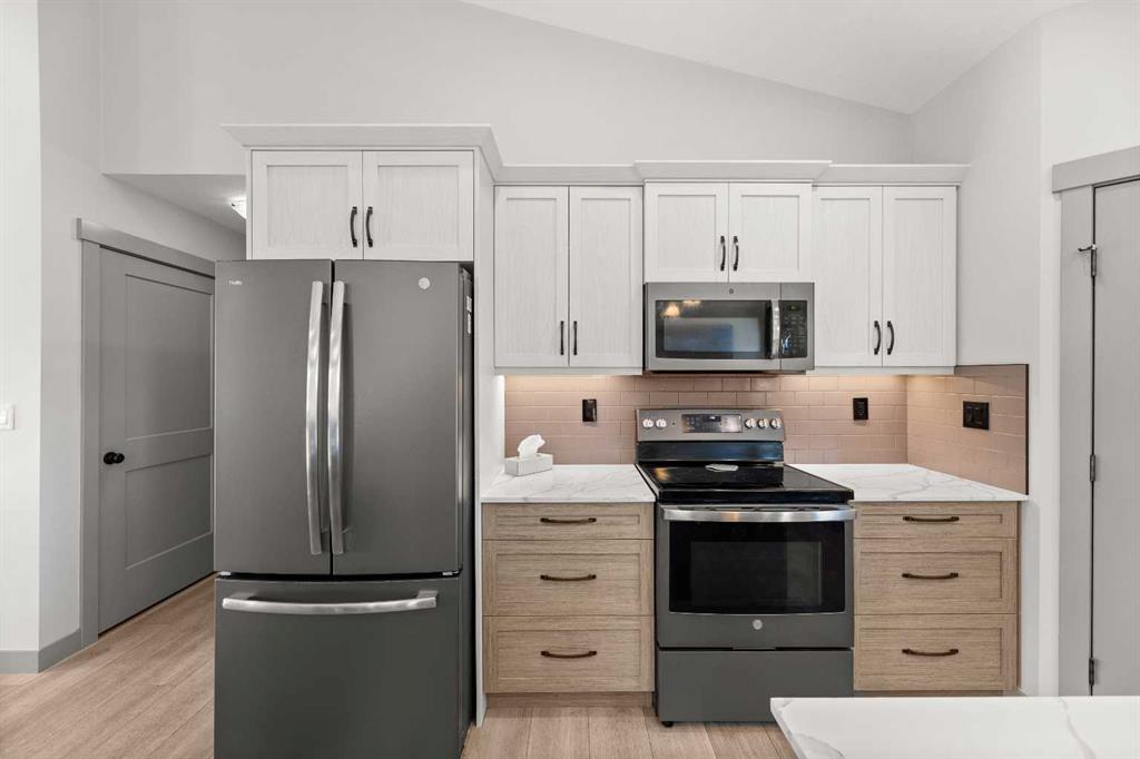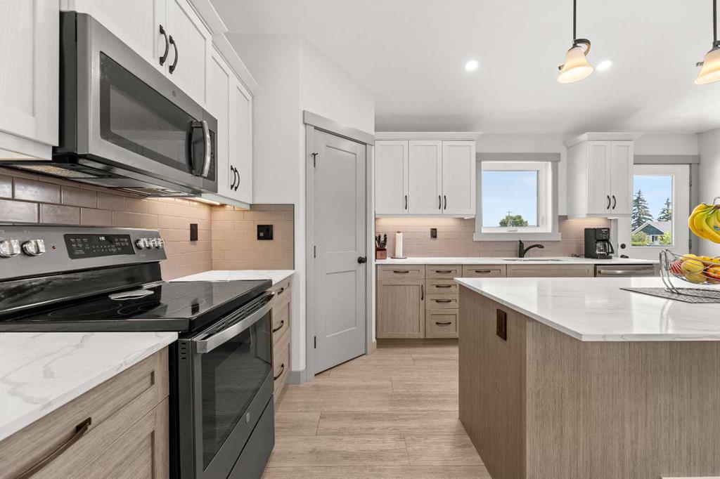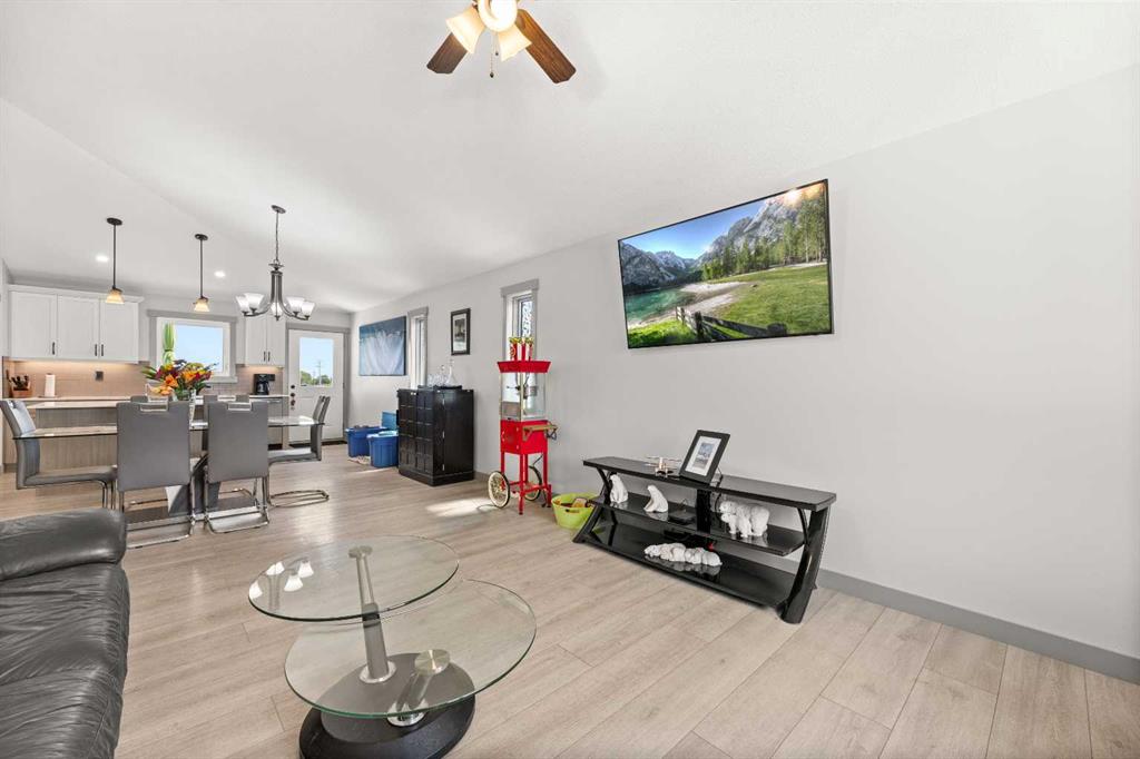 Back on the market due to the buyers inability to close. THIS COULD BE YOUR NEXT HOME!!! This is an almost new home located in one of the quieter areas of Didsbury. Lots of extras here too so you will want to check this one out! You will immediately notice that there is an extended concrete driveway providing you with more parking so there\'s lots of space for all the toys. Inside you will appreciate all of the top notch quality finishes. The kitchen has lovely quartz countertops, a large island, pantry, lots of soft close cabinets and access to the back yard. There is a large dining room and living room with vaulted ceilings and is a really great place for those family gatherings with the spacious, open floor plan. The primary bedroom has a walk in closet and 4 pc ensuite. There are 2 other secondary bedrooms, a full bathroom and there is rough in for laundry facilities on the main level if you\'d rather not have it in the basement. Heading downstairs, development has been started here with plumbing for a bathroom (toilet installed, rough in for shower), framing for another bedroom, a large family room and the laundry room. It will not take much to finish this basement. There is also a WOOD STOVE and rough in for in floor heat (for the garage too) so once it is finished you will appreciate the warm floors in the winter. AND there is CENTRAL AIR! The yard defines low maintenance because there is high end astro-turf in the front and side yards so that you don\'t need to mow nearly as much and there is also easy to maintain vinyl fencing. The large deck has storage below and you will appreciate the raspberry and saskatoon bushes during the summer. The garage is finished and has a 9\' door with plenty of space for the tools/toys. This home has many extra features and just waiting for it\'s next family. Call today to book a viewing!