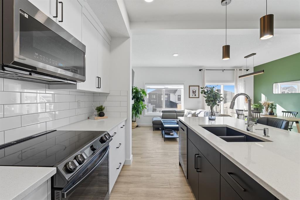 Step inside to discover a bright, open-concept main floor featuring luxury vinyl plank flooring, stylish finishes, and a white and bright kitchen featuring stainless steel appliances, quartz countertops, gas rough-ins, and ample cabinetry for all your storage needs. The inviting living area centres around a modern electric fireplace and opens onto a sun-soaked south-facing deck and backyard—perfect for entertaining or relaxing.