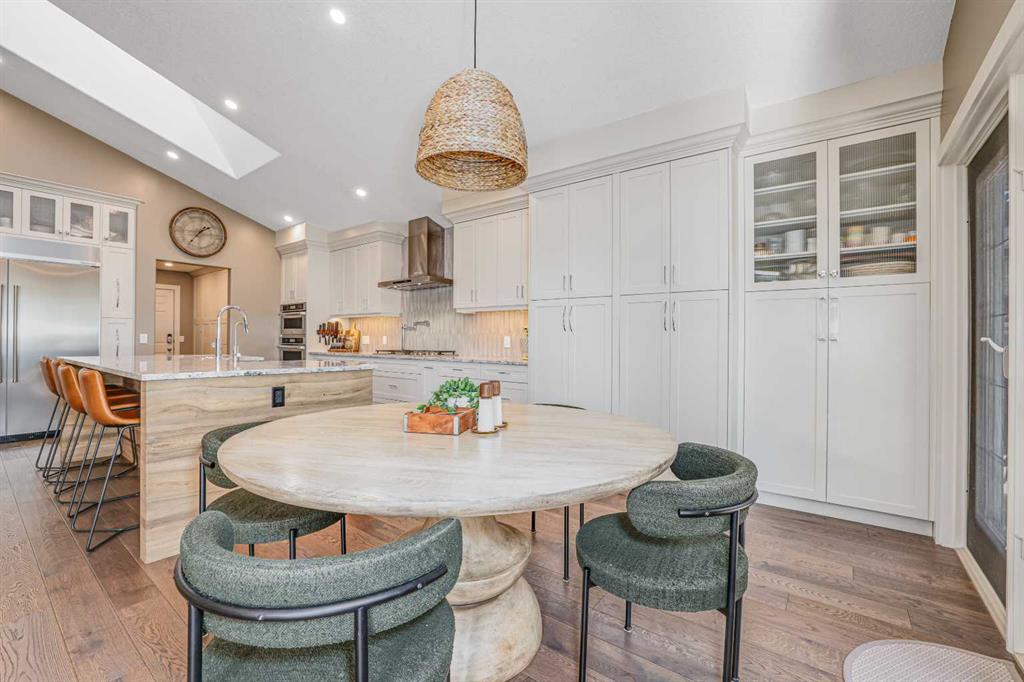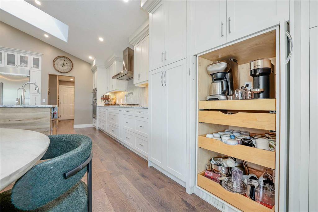 The finished walkout basement continues the home’s upscale feel with in-floor heating throughout. This spacious lower level offers 2 more bedrooms, another bathroom and versatile areas for lounging, fitness, or media. A climate-controlled wine cellar and tasting area add a unique touch of refinement.