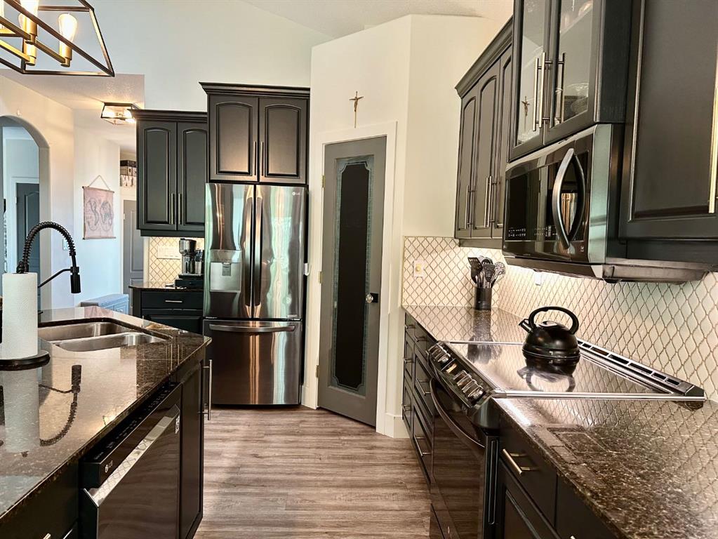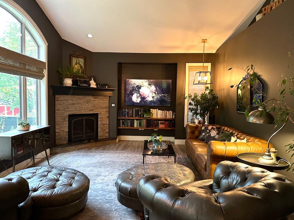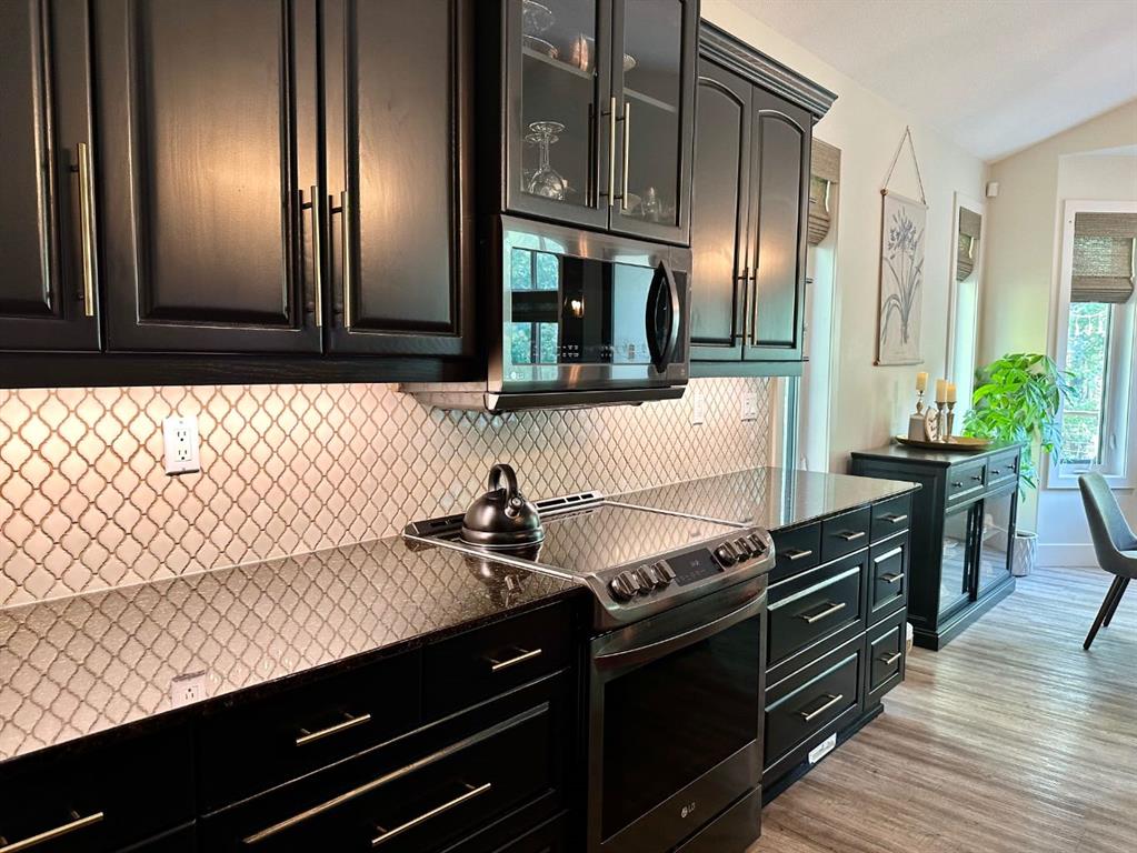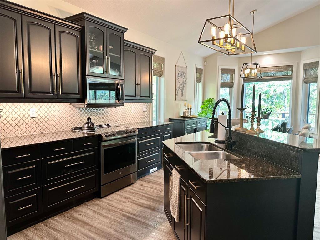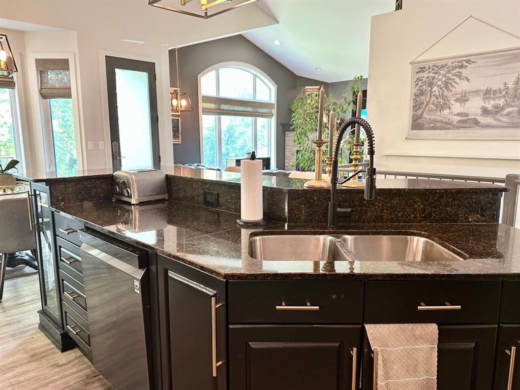 Home is so many things, Its a roof over your head and this one was replaced in 2022. Its your safe space the moment you walk through the 8\' tall insulated steel door with triple latching lock (2019). Inside your sanctuary the colour palette is light and creamy and dark and moody all at the same time. Home is where you nourish body and soul which will be a treat in this elegant kitchen with professionally refinished (2019) solid oak cabinets vintage brass handles, granite countertops, induction stove, fridge w/water and ice dispenser, a corner pantry, raised bar island perfect for entertaining. The open concept floor plan offers views from the kitchen through to the living room or dining room and out to the dreamy backyard. Your view is pure tranquility no matter the season. Vaulted ceilings add grandeur to this charming bungalow. The living room with its expansive picture window brings nature right inside, cozy gas fireplace, walnut shelving and architectural niches to display your treasures. The alcove behind the TV mount is done in black shiplap which makes the images pop off the screen. The primary bedroom is designed large! A walk in closet, completely renovated ensuite with more walnut accents and walk in shower with frameless shower door and modern concrete look tiles. The bespoke powder room boasts moroccan tile backsplash, waterfall faucet and sparking granite counters. A farmhouse chic, main floor laundry is just around the corner Sure to quell the drudgery of household chores, a reclaimed vintage farmhouse sink with drainboard is an absolute workhorse, adorned with a patina that tells the story of generations. Front load washer and dryer have been styled with a walnut waterfall countertop for folding, wrapping or constructing. Storage in this home is second to none! 3 closets in the laundry room, coat closet in the entry, 2 basement walk in closets, another linen closet plus under stair storage. Not to mention all the easily accessed storage space under the rear deck. The basement has the levelled up sophistication you would expect after enjoying the main floor. Large bedrooms, a tray ceiling in the family room, luxury vinyl plank floor, new baseboards and the same beautiful crystal doorknobs, all combine to give a retreat experience made all the cozier by a warm ICF envelope & in-floor heat. A new furnace, central a/c and new hot water tank (2021) provide peace of mind you deserve. Other custom touches include new woven window coverings throughout, lighting (both pendant and recessed LED) AND the addition of full perimeter gemstone lighting. New wood look garage doors make this home stand out. Inside is an epoxy floor that sparkles and stays warm with in floor heating. The yard might be equally as enchanting, with a new composite deck (2023), beachy hammock area, rundle pathway leading to a secluded firepit area. The treed back yard offers absolute privacy. Too many features to list. Extra brochure with list of upgrades available.