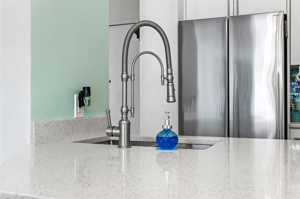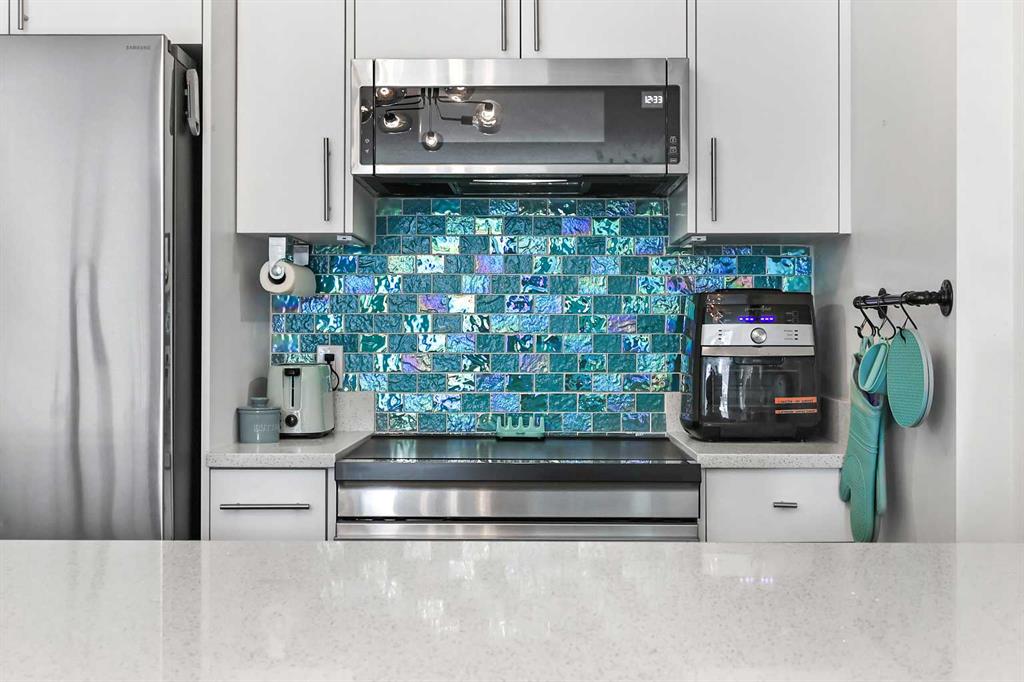 Discover an incredible opportunity to own a BEAUTIFULLY RENOVATED condo in the PRESTIGIOUS EAU CLAIRE district at an affordable price! Step inside to find a bright open-concept layout anchored in this 1 Bed/1 Bath condo in PRINCES CROSSING with sunny SOUTH EXPOSURE and lovely views from the 6TH FLOOR in this CONCRETE BUILDING. You\'ll fall in love with the designer KITCHEN showcasing ceiling- height CUSTOM CABINETRY featuring UPGRADED STAINLESS STEEL APPLIANCES including a sleek INDUCTION COOKTOP WITH CONVECTION OVEN, glass mosaic backsplash, QUARTZ COUNTERTOPS, and expanded eat-at island that seats four. Additional CUSTOM CABINETRY added to island for more storage. The spacious living area is bathed in natural light through large patio doors that open to your circular 180 degree balcony where you can take in the south URBAN SKYLINE AND WEST VIEWS. Renovated full bath with NEW VANITY, QUARTZ COUNTER-TOP, mirrored storage cabinet and DEEP SOAKER TUB. Updated baseboards, lighting and hardware throughout. Smart details like IN-SUITE LAUNDRY and a SPACIOUS STORAGE ROOM (big enough for a bike and more) make everyday living easy and organized. Pets allowed with Board approval. Princes Crossing offers a variety of lifestyle amenities including a well-equipped fitness centre with steamroom, on-site convenience store, meeting room, concierge service and a heated underground parking stall. All of this just steps from Calgary\'s river pathways, fine dining and trendy cafes yet nestled on a quiet, tree-lined street in one of the city\'s most exclusive enclaves. Experience the best of downtown living - elegant, effortless and affordable!