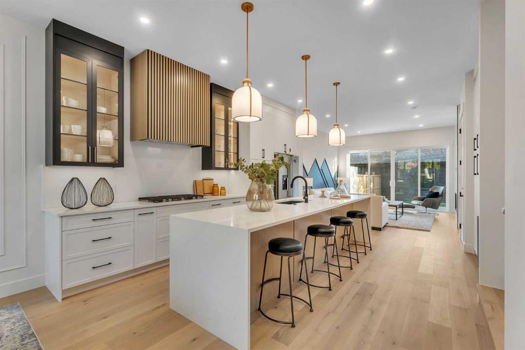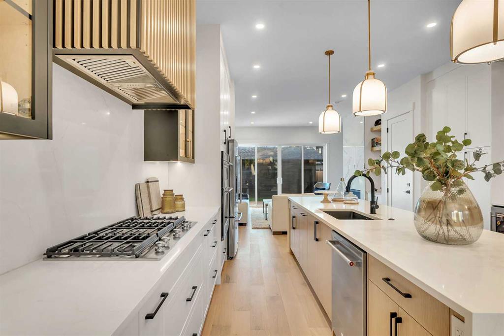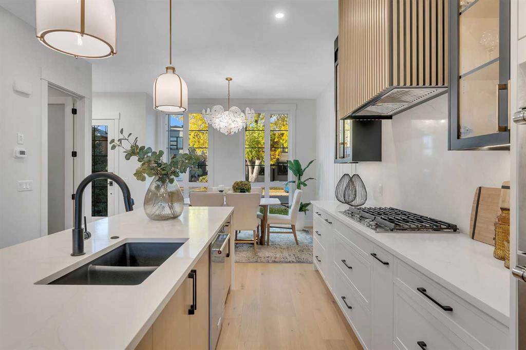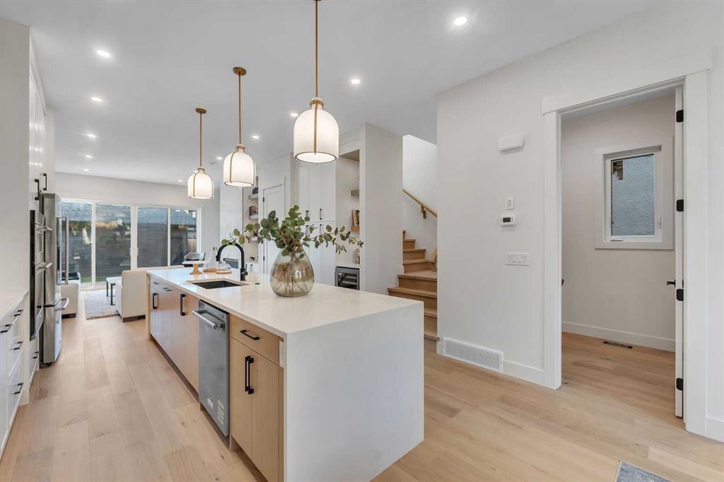 Welcome to the heart of Mount Pleasant, one of Calgary’s most sought-after inner city neighbourhoods. This newly built semi detached home combines modern design with practical family living, offering over 2,800 sq ft of beautifully finished space including a legal suite. Thoughtfully designed for flexibility, it’s ideal for multi generational living or rental income without compromise on comfort or style. The open concept main level features large windows that fill the home with natural light. The kitchen showcases KitchenAid appliances, sleek and stylish custom cabinetry, quartz countertops, and a stunning full slab backsplash that creates a clean, seamless look. A large island anchors the space, perfect for casual meals or conversation. The adjoining dining and living areas flow naturally toward the deck, creating an inviting space for both family time and entertaining. A fully fenced, landscaped yard with a composite deck offers a private, low maintenance outdoor retreat. Upstairs, the primary suite is a true escape, featuring a large walk in closet and a spa inspired ensuite with Italian tile, a steam shower, freestanding tub, and dual vanities. Italian tile continues through all bathrooms, adding a consistent, upscale feel. Two additional bedrooms, a full bath, and a laundry room complete the level, designed with both privacy and function in mind. The legal two bedroom basement suite is self contained with its own entrance, full kitchen, laundry, and bath, ideal for extended family or generating additional income. The design and sound separation ensure comfort for both households. Additional features include smart toilets, engineered hardwood on the main and upper floors, durable LVP in the basement, and a double detached garage offering secure parking and extra storage. The exterior blends red brick, and modern accents for timeless curb appeal. Mount Pleasant continues to be one of Calgary’s most desirable communities, known for its mature tree lined streets, walkability, and welcoming feel. Residents enjoy easy access to Confederation Park, the community pool and sports facilities, as well as cafes and boutiques along 4th Street NW. Close proximity to SAIT, Kensington, and downtown makes daily life convenient and connected. A home that delivers quality construction, flexible living, and a location that will always be in demand. Move in ready.