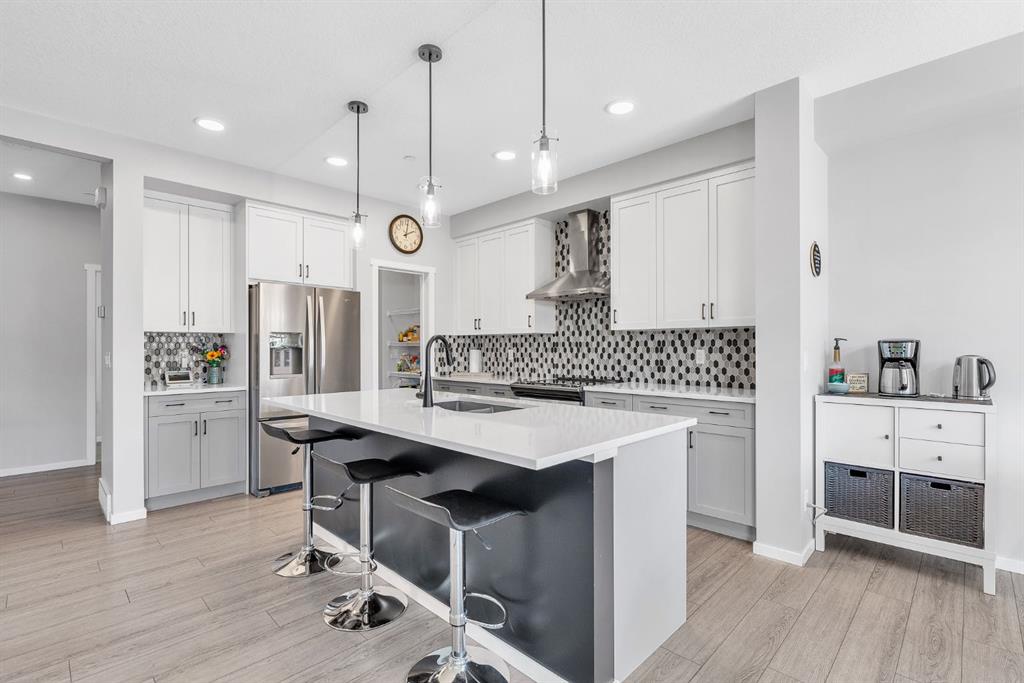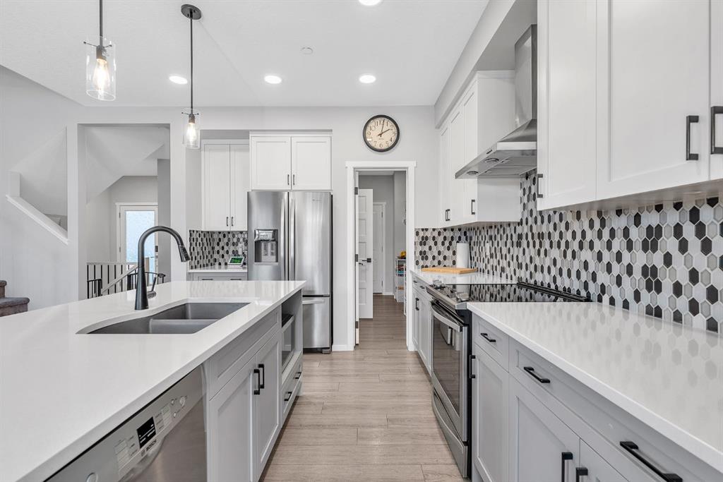 Located in the vibrant, growing community of Livingston, just steps from Livingston Park and within walking distance of numerous amenities is this immaculately kept 4 bedroom, 3.5 bathroom, modern 2 storey home with bright, open floor plan, double attached garage and developed basement!! Entering the home, you\'re greeted into a spacious foyer. The functional main floor layout offers a discrete powder room set apart from the main living areas, a large mud room off the garage with a walk-through pantry that leads into the kitchen, and an open-concept living, kitchen and dining area overlooking the back yard. The kitchen is the heart of the home, featuring a large island with room for seating, stainless steel appliances, stone counters and ample storage with soft-close cabinets and drawers. The living room is anchored by a cozy gas fireplace and offers large windows for an abundance of natural light. Upstairs, you\'ll find a large primary bedroom with spacious ensuite and walk-in closet. The ensuite features dual sinks, a soaker tub and separate shower, and a private water closet. Down the hall is a versatile den/office space, two additional bedrooms, a full bathroom and convenient upper laundry room. You\'ll also appreciate the open bonus room on this floor. The basement is developed with a family room and large bedroom with walk-in closet and private ensuite. Enjoy the rear deck, complete with BBQ gas line, and the fully-fenced yard for the kids and pets! With central air conditioning to keep you comfortable on hot summer days and a complete fire suppression system for added peace of mind, this is the perfect family home.