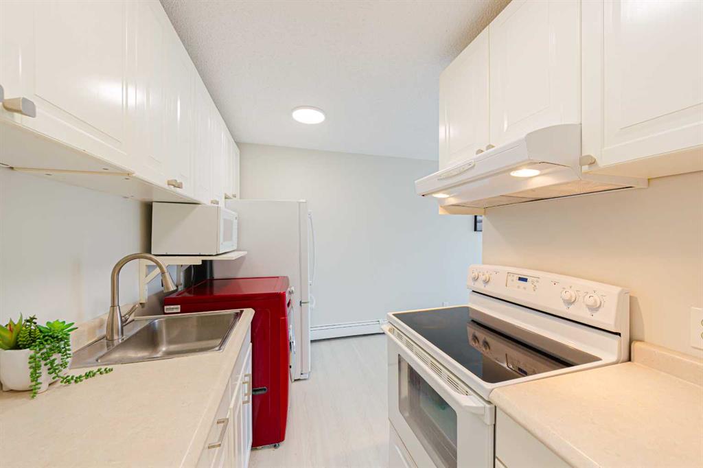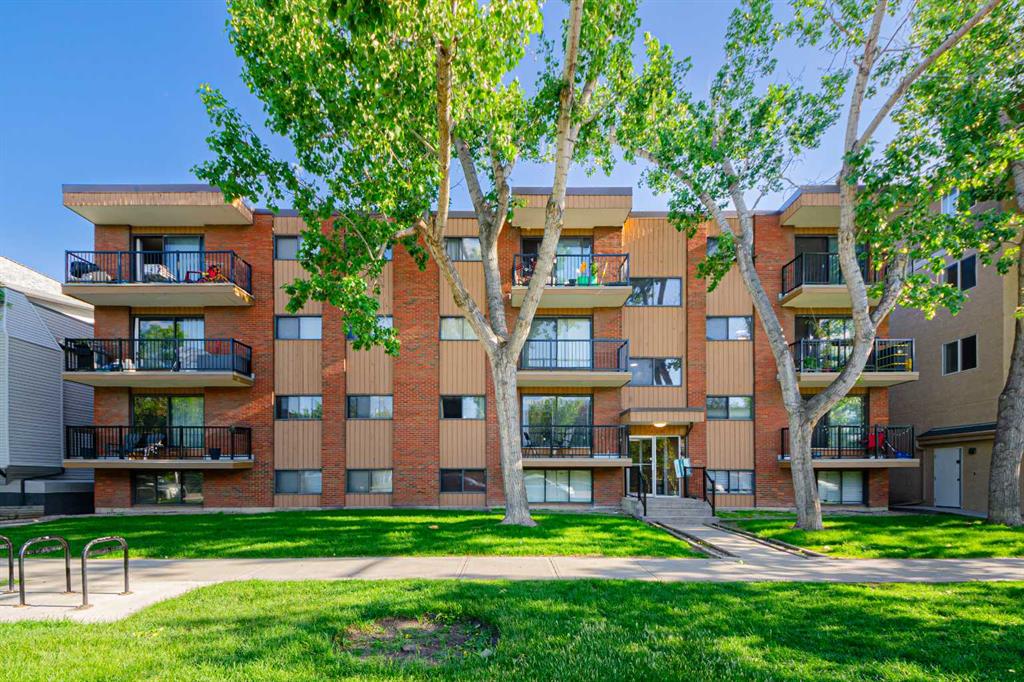 Location! Location! Location! Fresh updated one bedroom in King Manor of desirable Sunalta! Located in a well-managed 4 storey building with Brick exterior, this condo is nestled in a quiet west end of DT while still being handy enough to walk to LRT, BUS, 17th Avenue’s vibrant shops, restaurants and all other amenities! Bright SOUTH FACING living room & bedroom with brand new LVP flooring and new baseboards throughout. White kitchen cabinets with white appliances and a red washer to add living convenience. New toilet in bathroom as well as fresh paint in the whole unit. And there\'s good sized bedroom with update vinyl window. Also comes with a storage room next to the front door for all your extra stuff...Parking is at the back side of the building facing directly from the unit. Whether looking to move in and be part of this exciting inner-city life or looking for an investment property, this is a great buy! Call today to view!