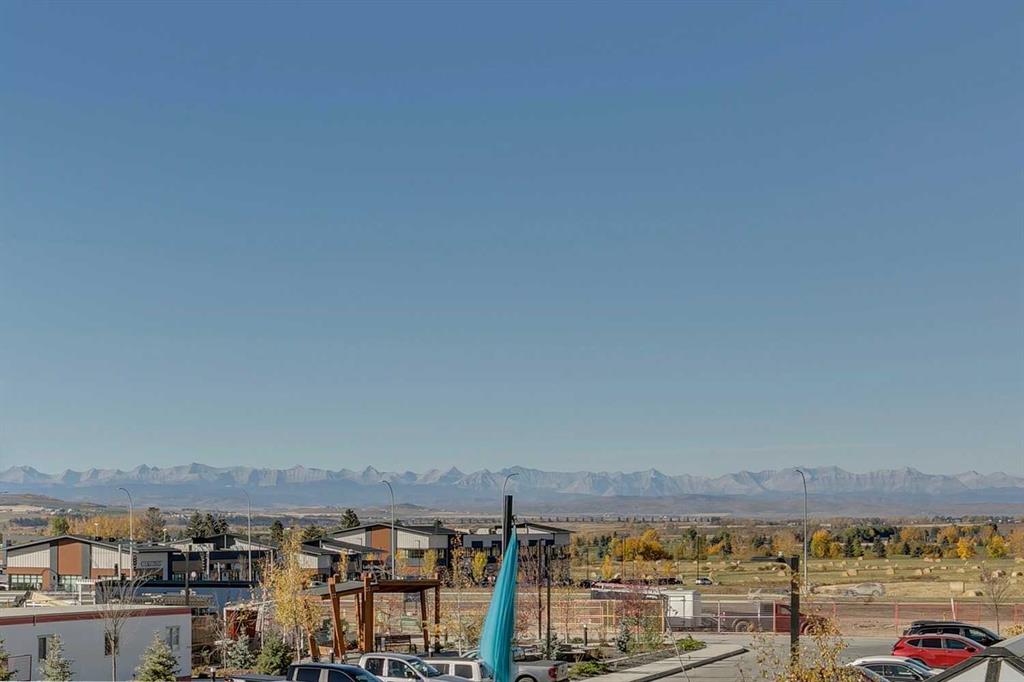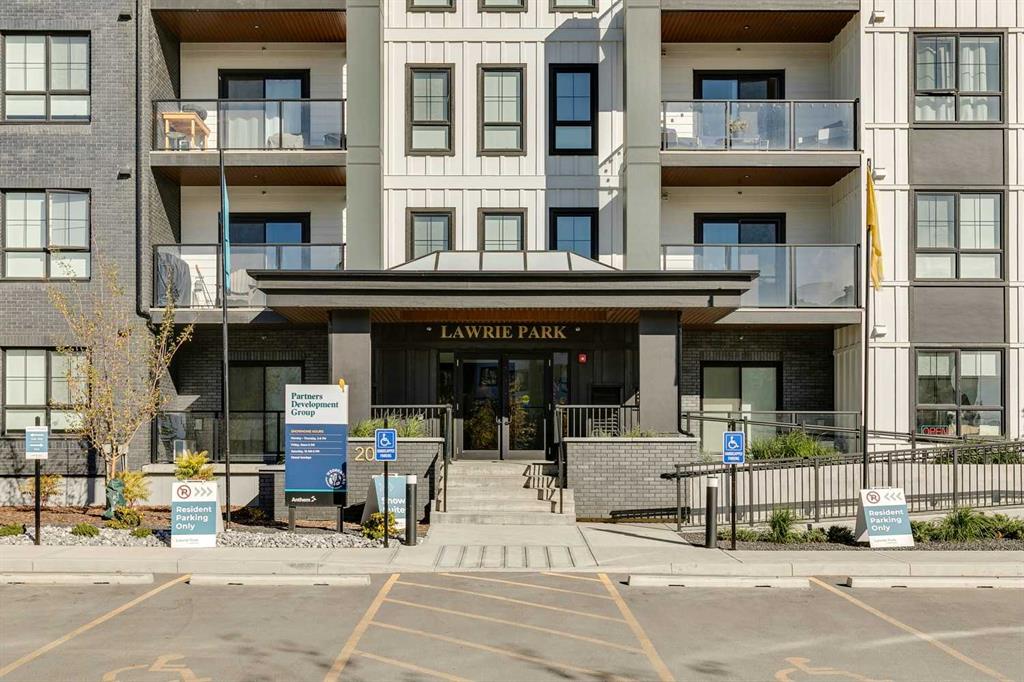 Welcome to the Lawrie Park, Okotoks\' newest apartment complex, surrounded by parks, walking paths, and panoramic views. Enjoy the convenience of being within walking distance to D\'Arcy Crossing Shopping Centre, as well as easy access to Calgary. This development, quality built by Partners Homes, offers a prime location with modern design and finishings. This is an ideal option for first time buyers, retirees, investors and young professionals. Functional floor plan with 2 bedroom, 2 bath unit has a sunny south exposure from the spacious private balcony (with gas barbeque hook-up). This second floor unit features an open floor plan with high ceilings, large windows, and bright interior colors. Upgrades include air conditioning, barn door, custom window coverings and more. The bright kitchen features white cabinets, quartz counters, and massive center island with huge dining/breakfast bar area. The adjoining living room offers an abundance of space for furnishings with patio door to enjoy the mountain, courtyard and park views. The master bedroom is a good size featuring a 4-piece ensuite. The second bedroom would also be ideal for a home office or flex room. There is a main 4-piece bathroom and convenient in-suite laundry. Titled heated underground parking and assigned storage locker. This is a pet friendly complex. Enjoy a relaxing stress-free lifestyle in this outstanding Lawrie Park condo. Immediate possession. Just move in and enjoy!
