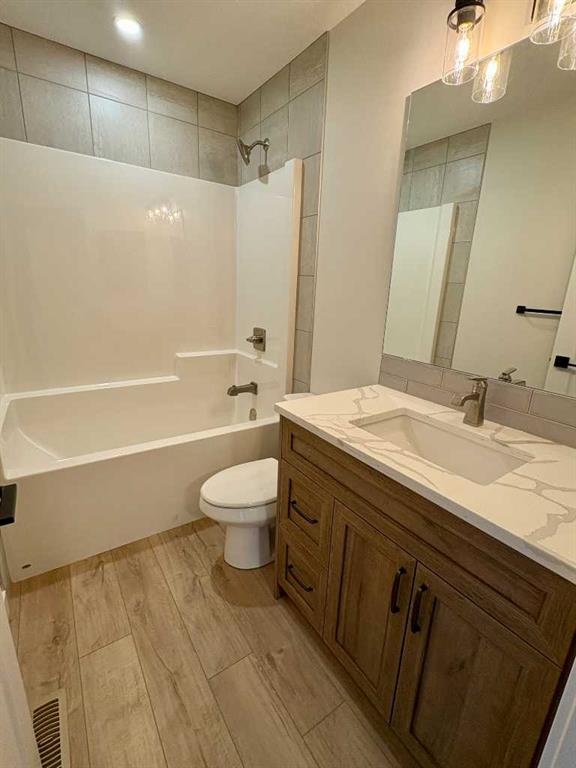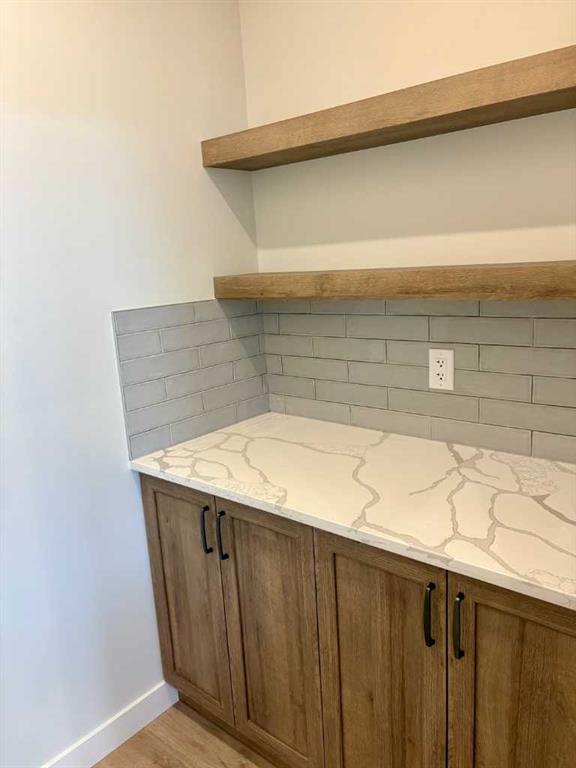 Welcome to a stunning and stylish Woodmaster Homes built bungalow on an amazing lot with a large TRIPLE attached garage and views of the foothills and trees. This well thought out plan features Luxury Vinyl Plank flooring through out, and a large kitchen with a spacious island, eating bar and pantry. You will LOVE the bright sunshine that comes through the floor to ceiling triple paned windows that look out over your private west facing backyard and a wonderful large vinyl rear deck which is complete with a gas line. This open concept floorplan has vaulted ceilings and has been designed with plenty of space for dining and entertaining. The living room is bright and inviting and includes a fireplace for ambiance and warmth. The primary bedroom is large and bright with a great walk in closet and 4 piece ensuite. A large second bedroom and a spacious laundry room complete the main floor. Downstairs you will find large bright windows and roughed in pluming for future development, there is also a separate entrance into the basement from the garage. This opens up endless opportunities for working from home or applying for a home based business. Other significant upgrades include Hardie Board Siding, an insulated and drywalled garage, and the front landscaping completed. This home will come with New Home Warranty. The builder can also finish the basement if a buyer would like so please ask about this opportunity.