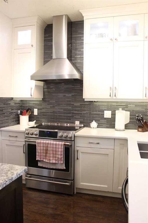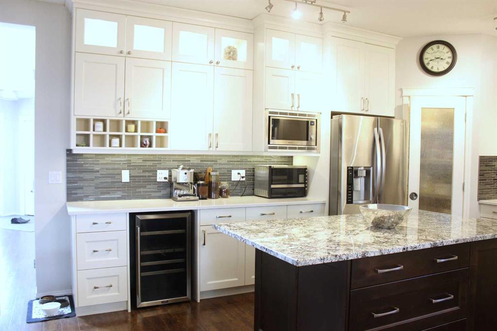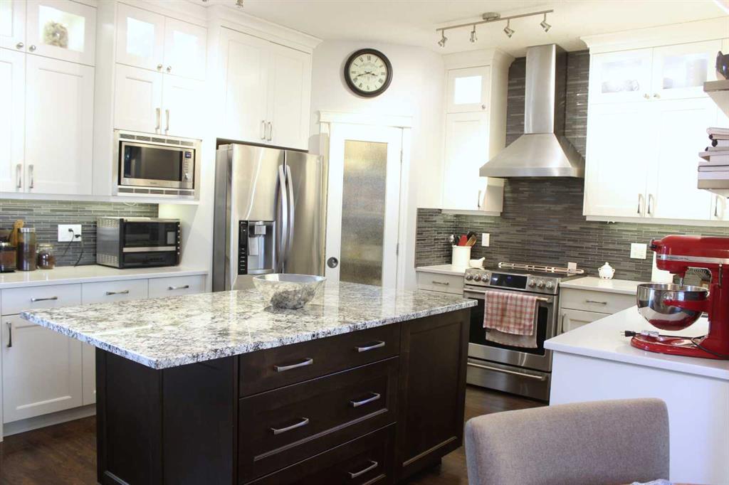 It’s everything you could want in a large home for the large family. Almost 3000 sq/ft of living space across all 3 levels with 5 bedrooms on a pie shape lot providing a big back yard. Nestled on a stunning location, tucked away in a quiet corner of the street overlooking a beautiful park/playground, just around the corner from all your daily needs at the local shopping centre. The kitchen is breathtaking with it’s huge granite island along with abundant counter and cupboard space and high-end finishes. The cozy living room is well integrated into the open concept of the main floor. The dining room is elegant as is the discrete little powder room just down the hall. Main floor conveniences like the generous mudroom, central laundry and smart walkthrough pantry will impress. No carpets on the main floor or upper level makes the living spaces sleek and clean. The Master bedroom is spacious and well appointed with walk-in closet and 5 pc en-suite bathroom. Two bedrooms and full bath complete the upper level which also boasts peek-a-boo views of the mountains and COP. The lower level is host to 2 more generous bedroom with big bright windows, 4 pc bath and plenty of storage space. The house has been well tended and upgraded with genius features including heat pump cooling/heating system which uses no gas when it’s warmer than -5 Celsius and solar panels that provide electric rebates and credits for a good portion of the year. The back yard is the envy of all, with extensive deck space, tons of yard and a gorgeous atmospheric retreat under the lighted pergola and outdoor fireplace mantle: perfect for cooling autumn nights. Absolutely no compromises or disappointments here, see for yourself and get ready to move home.