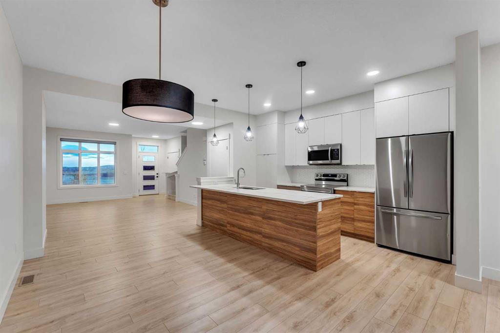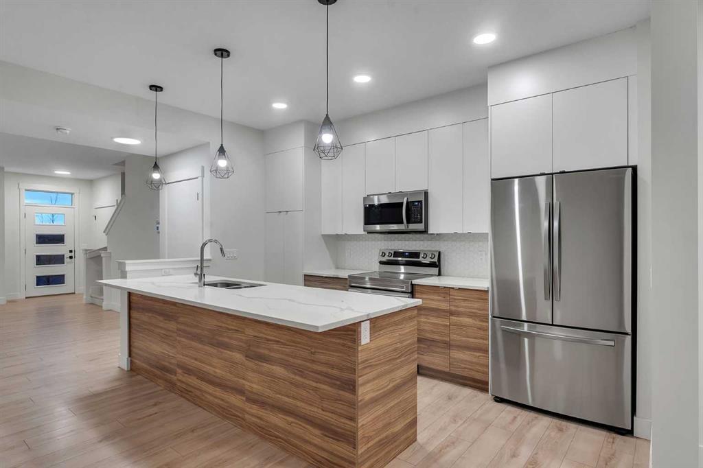 Welcome to this beautifully maintained 4-bedroom, 3.5-bathroom end unit townhouse in the sought-after community of Carrington NW Calgary. With no condo fees, a detached double garage, and a fully developed illegal 1-bedroom basement suite, this home offers incredible value, comfort, and functionality for families or investors alike.