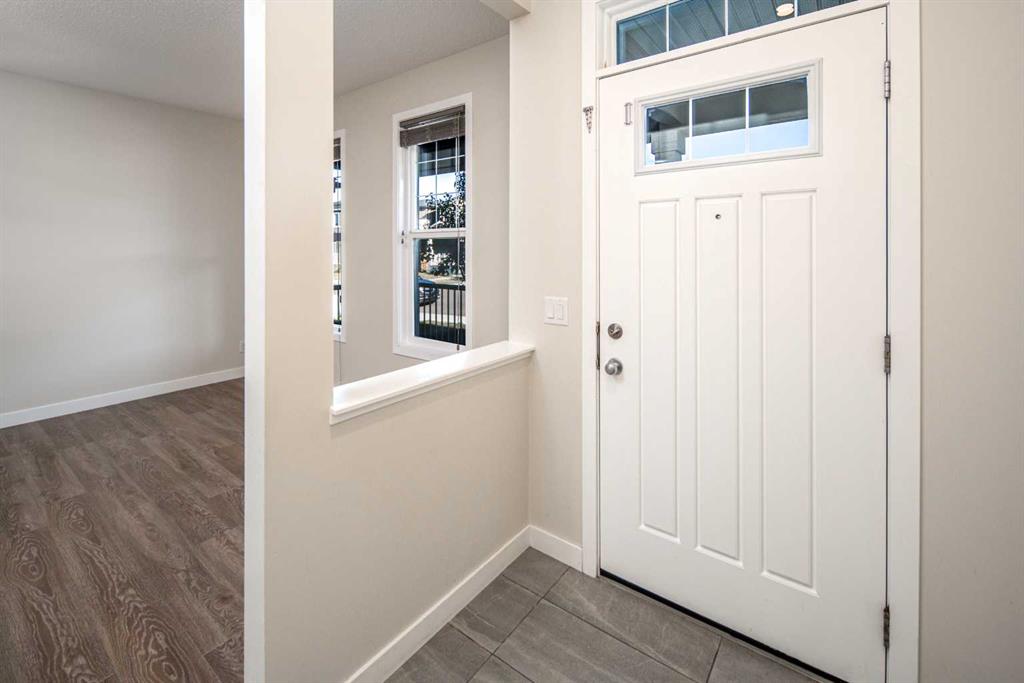 Welcome to this stunning Jayman-built 3-bedroom, 2.5-bath home, perfectly situated on a quiet street in the desirable community of Evanston. Featuring nearly 1,581 sq.ft. of beautifully designed living space plus an unfinished basement awaiting your personal touch, this home offers style, comfort, and endless potential. Enjoy your morning coffee on the charming front porch while watching the kids play in the front yard. Step inside to an inviting open-concept main floor with 9-foot ceilings, large south-facing windows, and an abundance of natural light. The spacious living room flows seamlessly into the dining area—ideal for family gatherings and entertaining. A built-in workspace beside the staircase provides the perfect spot for remote work or study. The heart of the home is the modern kitchen, showcasing a large island with seating for three, granite countertops, a subway tile backsplash, stainless steel appliances, and elegant cabinetry with mantel detailing. The rear mudroom features a convenient powder room and leads to a large deck and a sunny south-facing backyard—perfect for BBQs and outdoor enjoyment. With rear lane access, there’s room for a future oversized double garage or RV/boat parking. Upstairs, the primary suite offers a walk-in closet and a bright 4-piece ensuite. Two additional spacious bedrooms, a stylish main bath, and upstairs laundry complete the upper level. The open basement features a large south-facing window, offering great potential for a future recreation room or additional living space. Recent upgrades include a brand-new roof, new siding, soffits, downspouts, and a new dishwasher—providing peace of mind and great curb appeal. You’ll also love the instant hot water system for everyday convenience. Located close to parks, playgrounds, schools, and with easy access to Stoney Trail and Symons Valley Parkway, this turn-key Jayman-built home is move-in ready.