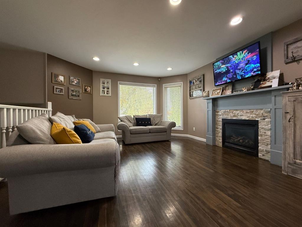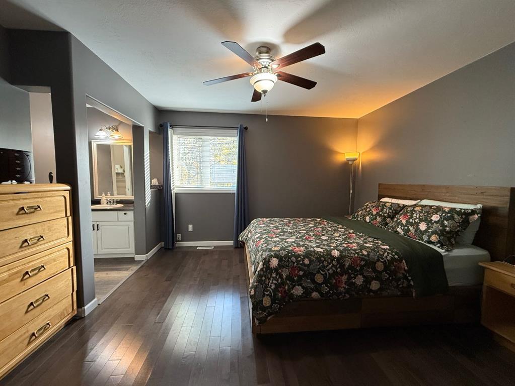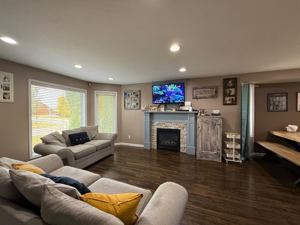 Welcome home! This beautiful 1175-square-foot residence is a perfect blend of comfort and functionality, offering 5 total bedrooms and 3 full baths for the growing family. The bright, open-concept main floor features a spacious living room and a modern kitchen, creating an ideal layout for entertaining and daily living. For your convenience, the main floor also includes a laundry room and three generous bedrooms, including the primary bedroom equipped with a 3 piece ensuite. The fully developed basement adds incredible extra living space with a large family/rec room, two additional bedrooms, a dedicated office, and another full bathroom. Outside, the fully landscaped and private backyard is a serene oasis, backing onto a tranquil creek for a truly picturesque setting. The double attached, heated garage is a fantastic bonus, providing secure parking and storage all year round. This property offers a unique combination of peaceful, private living with all the modern amenities you desire. Recent updates, including a new air conditioning unit and updated shingles, ensure peace of mind for years to come.