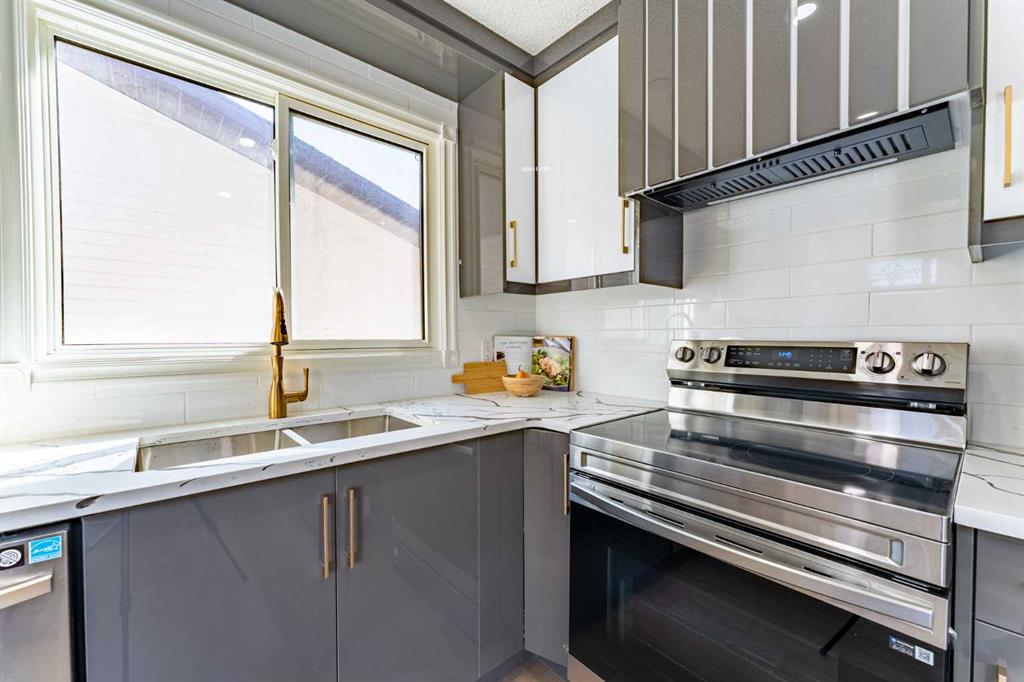 FULLY RENOVATED IN TEMPLE! Welcome to this beautifully renovated bi-level in Temple offering MODERN FINISHES, functional space, and abundant natural light! The newly painted exterior is complemented by beautiful landscaping, including a charming walk path with path lights that create a welcoming curb appeal. This Bi-level layout also offers a separate up-and-down entrance with a shared common landing, adding privacy and flexibility. The main living area is warm and inviting, featuring elegant wall panels, a beautiful ELECTRIC FIREPLACE, and a bright south-facing exposure that fills the home with sunshine. Just off the living room is the dining area, highlighted by bay windows, creating the perfect setting for family meals or entertaining. The brand-new kitchen is a true showpiece with high-gloss two-tone cabinetry, QUARTZ countertops, stainless steel appliances, and striking GOLD hardware and accents. There are 2 spacious bedrooms on the main level, including the primary with its own 2-piece ensuite, along with a stylish 4-piece main bath. Both bathrooms have been fully updated with gold faucets and fixtures for a luxurious touch. The FULLY FINISHED illegal basement suite expands the living space with 2 additional bedrooms, a huge recreation area, a 3-piece bathroom and another 2-piece bathroom. The kitchen also features QUARTZ countertops and is finished with ceramic tile flooring. Step outside to enjoy the MULTI-LEVEL DECK with a GAZEBO and lower picnic area, perfect for gatherings and entertaining. The property also includes RV parking, a heated double garage with 220V power, workshop setup, and bright LED lighting, plus convenient under-deck storage. WALKING DISTANCE to SCHOOLS, and a playground just one house away, this home truly combines comfort, function, and family-friendly living. Book a showing and come take a look at this gem!