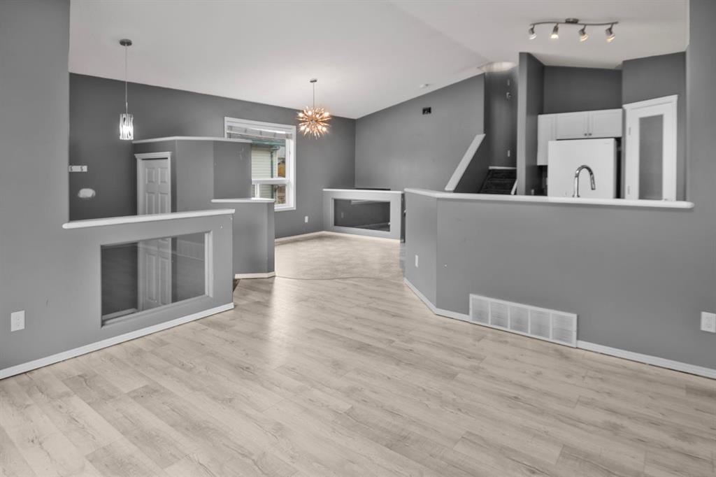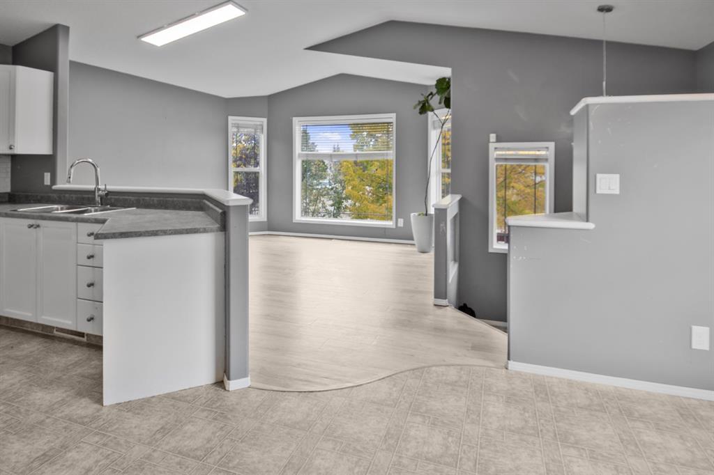 4-level split with 4 bedrooms and 2 full bathrooms. Open-concept main floor with vaulted ceilings, updated vinyl plank, kitchen featuring corner pantry & matching white appliances. Upstairs hosts primary bedroom with walk-through closet with direct access to the main 4-piece bathroom & 2 spare bedrooms with upgraded carpet. Third level walk-out offers a spacious rec room with access to backyard. Fully finished basement includes a 4th large bedroom with walk-in closet with built in shelving, 4-piece bathroom with soaker tub, and laundry. The yard is fully fenced with a massive 14x12 shed. Located directly across from a park and backing onto walking trails. Ideal for families looking for space and convenience. Immediate possession available!