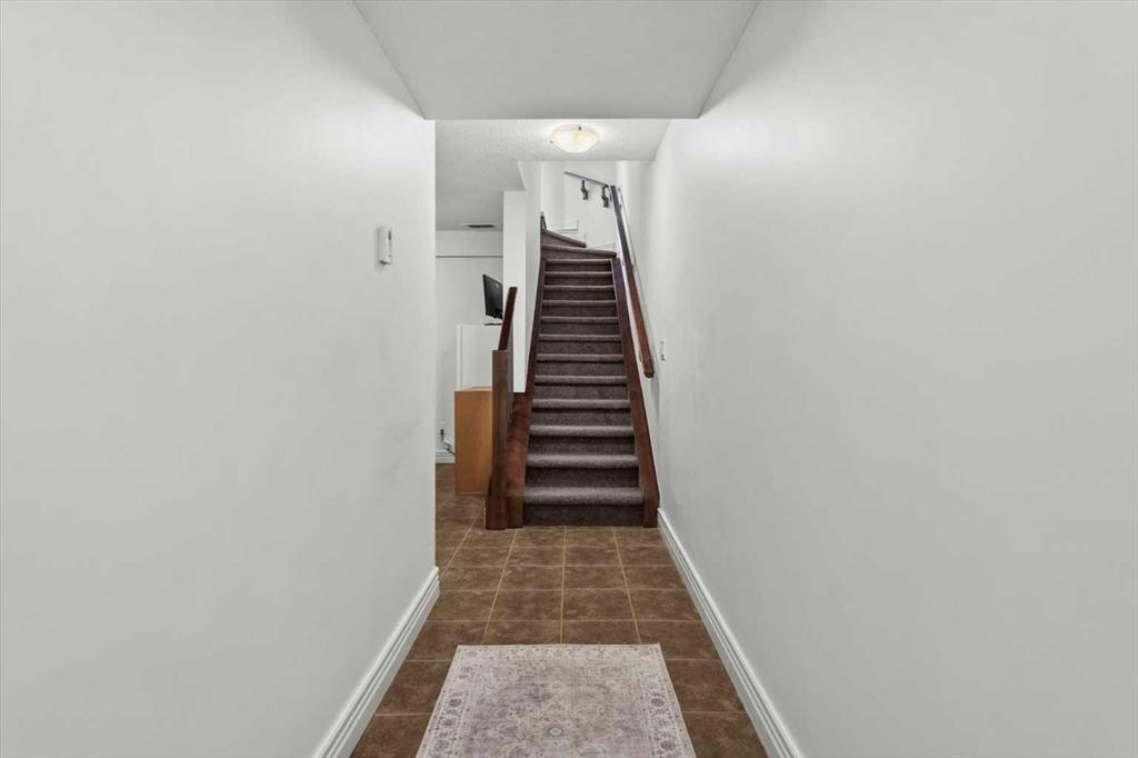 Upstairs, the primary bedroom offers stunning mountain views and a three-piece ensuite, along with a second bedroom and 4 piece bath. The laundry is conveniently located on this upper level