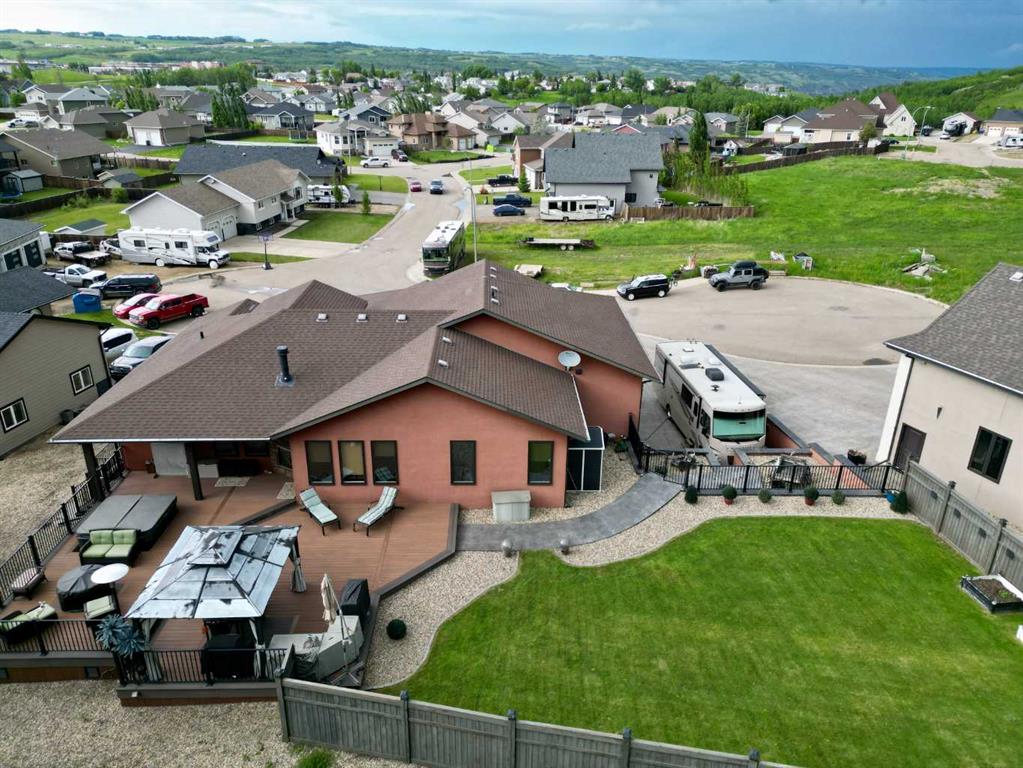 A True Custom Masterpiece – Where Quality, Comfort, and Craftsmanship Meet! This exceptional custom-built home is truly one of a kind—crafted with care, designed with precision, and built with no expense spared. Every detail has been thoughtfully planned, from the impressive garage to the luxurious outdoor living space and everything in between. Step inside and discover a home that’s as functional as it is beautiful. The chef-inspired kitchen features quality appliances, custom cabinetry, and plenty of space for entertaining in the adjacent dining and living areas. A cozy gas fireplace adds warmth and charm, making it the perfect place to gather with family or friends. With four spacious bedrooms and three bathrooms, there’s plenty of room for everyone. The oversized garage is a showstopper in itself—complete with two vehicle lifts, soaring ceilings, and an abundance of storage. Car enthusiasts will be in their element here! Outside, you’ll find an outdoor living space that rivals any resort. Top-of-the-line composite decking, a built-in outdoor kitchen, a relaxing hot tub, and a see-through fireplace create an inviting retreat designed for year-round enjoyment. With no neighbors behind, you’ll love the privacy and open views. The beautifully designed driveway and retaining wall not only add stunning curb appeal but also provide a dedicated RV parking pad with hookups. Downstairs, the fully finished basement is all about entertainment—featuring a custom bar and a comfortable theatre room ideal for movie nights or game days. Additional highlights include acrylic stucco, in-floor and forced-air heating (both zoned for comfort), central air conditioning, a built-in speaker system, and a fully monitored security system that tracks temperature, humidity, carbon monoxide, and fire for peace of mind. This home was built to impress and meant to be enjoyed. All the planning, upgrades, and finishing touches have already been done—simply move in and start living your dream. Don’t miss your chance to experience this incredible property—call today to book your private viewing!
