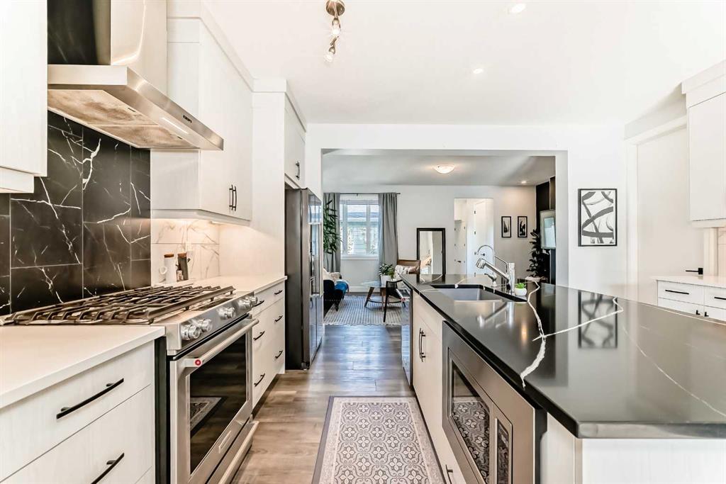 ** OPEN HOUSE: Saturday, October 18th 4-6pm ** Welcome to 404 Yorkville Avenue SW, a beautifully crafted 3-bedroom, 2.5-bath duplex in the heart of Yorkville, one of Calgary’s most vibrant and fast-growing southwest communities. Offering over 1,750 sq. ft. of thoughtfully designed living space, this home perfectly blends elegance, comfort, and everyday functionality. Step inside and immediately notice the attention to detail, from the bright, open-concept layout to the 8-foot doors, 5.5” baseboards, and stylish trim. The front dining area is filled with natural light, creating an inviting space for family dinners or relaxed evenings in. At the heart of the home, the chef-inspired kitchen stands out with floor-to-ceiling cabinetry, upgraded KitchenAid stainless steel appliances, striking two-tone quartz countertops, a silgranit undermount sink, and a large central island. A statement hood fan, two-tone backsplash, and dedicated pantry with a built-in coffee bar add the perfect finishing touches. Toward the back of the home, the cozy living room is anchored by a floor-to-ceiling electric fireplace and offers seamless access to the mudroom and double rear-attached garage, designed for convenience and flow. A stylish 2-piece powder room completes the main level. Upstairs, unwind in the spacious primary suite, featuring a walk-in closet and a spa-like 5-piece ensuite with a glass-enclosed tiled shower and separate soaking tub. Every detail has been considered — from the American Standard soft-close toilets to the high-end fixtures and designer tile selections. Two additional bedrooms, a full 4-piece bath, and a conveniently located laundry room complete the upper level, ideal for families or guests. Outside, enjoy low-maintenance landscaping with rock, pavers, and a BBQ gas hookup, perfect for entertaining without the upkeep. The unfinished basement offers endless potential for a future rec room, home gym, or guest suite. Enjoy peace of mind with the remainder of the new home warranty, including 5 years of building envelope coverage and 10 years of structural protection, fully transferable to the new owner. Located just minutes from Spruce Meadows, with quick access to Stoney Trail and Macleod Trail, Yorkville is a community on the rise, featuring Yorkville Central Park, a community skatepark, scenic walking paths, and nearby schools in Silverado. This home combines style, comfort, and long-term value, an exceptional choice for families, professionals, or investors looking for a move-in-ready home in one of Calgary’s most exciting southwest neighborhoods.