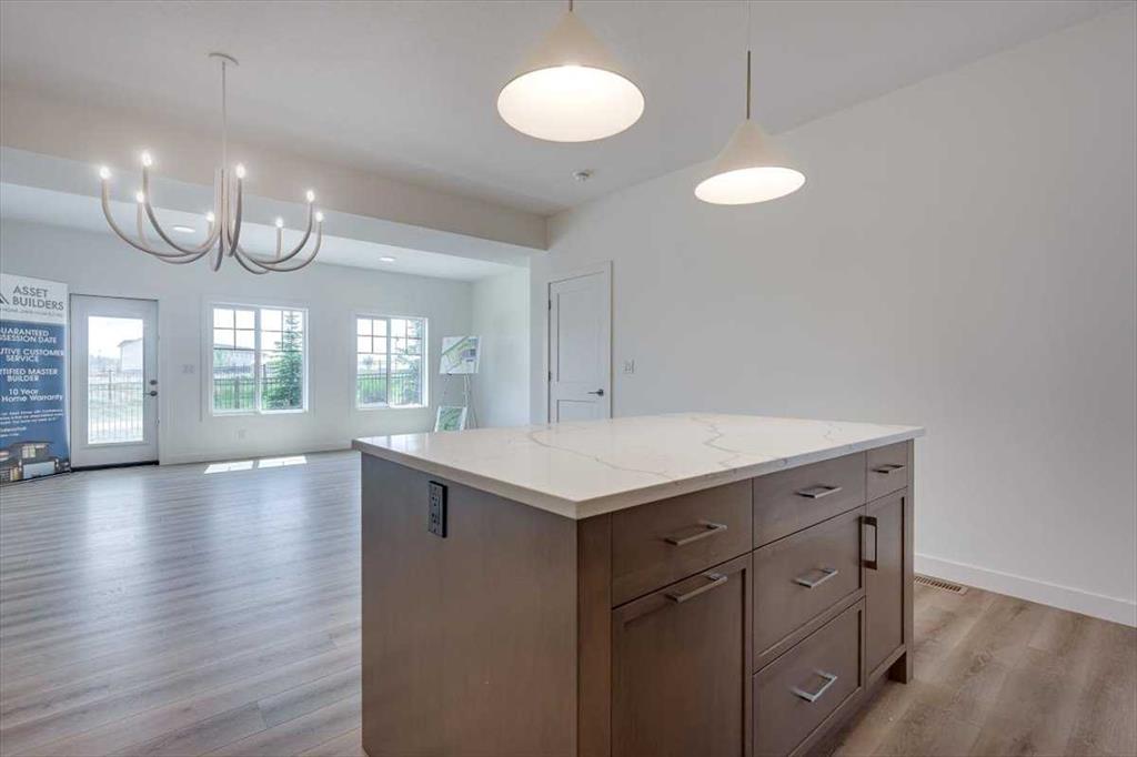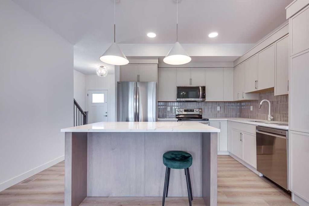 Now Included !! Amazing 3 bedroom 2 1/2 bathroom two storey 1/2 duplex with single attached garage in gorgeous Sixty West subdivision. As you enter the main floor you\'ll be impressed with the large front entry way with separate mud room, a two piece bathroom + man door for garage access. The open kitchen/living room/dining room design gives this home a spacious feel with plenty of natural light. Kitchen is finished with quartz counter tops, large centre island, pantry, stainless steel stove/fridge/dishwasher/OTR microwave. Just off the dining room a garden door leads you to the sunny south facing 10x12 rear deck with aluminum railing. Upstairs you will find three bedrooms, an upper floor laundry, a 4 piece main bathroom. The Primary bedroom includes a 4 piece ensuite and large walk in closet. Other great features include: 10 year new home warranty, front & back Sod, fully Fenced, Blinds, HRV, Triple Pane Windows, Quartz counter tops in all bathrooms, roughed in central vac, precast front concrete steps. Seller will develop the basement to add additional bedroom, family room and 4 piece bathroom for approx $36400 plus GST. Fence to be completed by end of October & sod after that weather permitting
