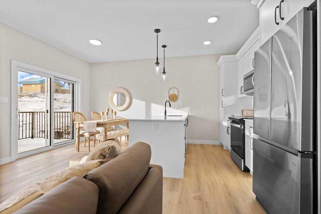 This stunning brand-new semi-detached home combines modern design with the comfort of a family-friendly community. Just minutes from the lake, you\'ll have easy access to endless recreational opportunities, including water activities, parks, and scenic walking trails. Step inside to a spacious foyer with a convenient 2-piece bath and direct access to the attached garage—now equipped with an electric vehicle charger for added convenience. The open-concept main floor features a beautifully designed kitchen with quartz countertops, a large island, and plenty of storage. The bright and airy dining area offers direct access to your south-facing deck, perfect for enjoying sunny afternoons. The living room is bathed in natural light, thanks to its expansive windows, and features durable, easy-to-maintain vinyl plank flooring throughout the main level. Upstairs, you’ll find three generously sized bedrooms, including a spacious primary suite with a 3-piece ensuite and a walk-in closet. The upper-level laundry room adds convenience, while a 4-piece main bathroom completes this thoughtfully designed floor plan. Enjoy a vibrant community with parks, playgrounds, a dry pond, and interconnected walking paths all just steps from your door. Don\'t miss your chance to own this exceptional home in an unbeatable location! PHOTOS ARE REPRESENTATIVE ONLY