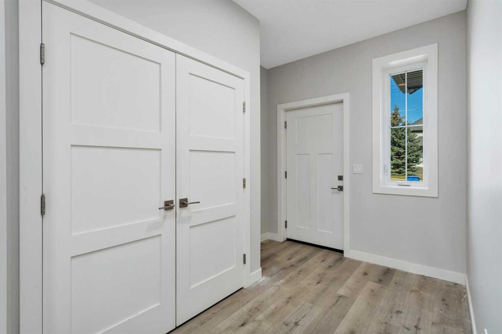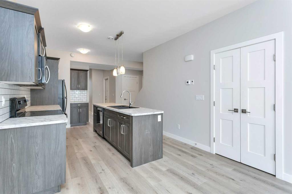 Up/Down suite with walk-out basement! Lots of opportunities here, with upstairs unit having 3 bedrooms; the primary bedroom is on the main floor & 2 large bedrooms upstairs with 4 piece bathroom and Bonus Room area! Vinyl plank flooring is throughout the entire unit, high ceilings creating nice open concept, subway tile backsplash in kitchen and large center island with storage. There is a coffee bar area , main floor laundry and hot water on demand in the utility room. The Primary has a walk-through closet to a spacious 3 piece ensuite. The outside deck is huge and captures morning & afternoon sun. Front attached single garage ensures your vehicle stays snow-free in the winter months and ICF block foundation keeps everything inside warm and toasty! Basement unit has large primary bedroom with walk-in closet and 4 piece bathroom close by. There is an office/den, corner pantry and quartz counters in the kitchen with large island and vinyl plank flooring. Ceilings are nice & high, big windows throughout and infloor heat ensures all the warmth you need. Washer & dryer are in utility room and there\'s a large cement patio outside to enjoy. Yard is partially fenced with 2 parking spaces out back. Balance of New Home Warranty remains for peace of mind. Great location, close to Dodds Lake, downtown amenities and all that the Town of Innisfail has to offer!