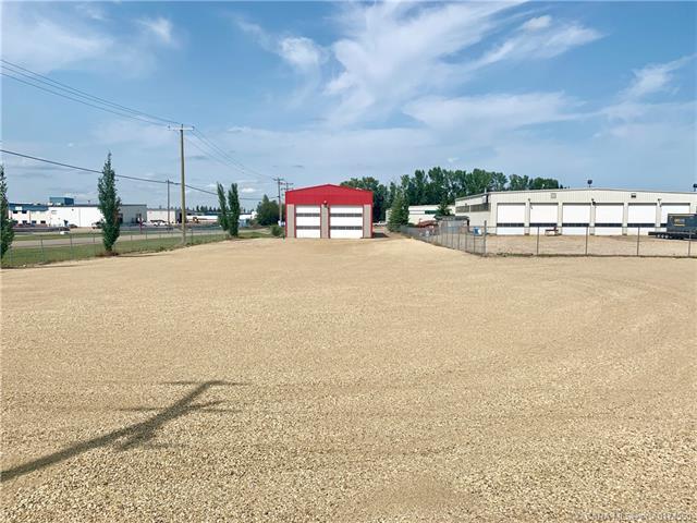 40\'x100\' Shop with a FULLY FENCED yard. FRESH PAVEMENT THROUGH OUT SUBDIVISION! Catering to Oilfield/ Mechanical and many other BSI Zoned businesses. Infrared tube heating, well insulated attractive building. High bay metal hallights, large insulated overhead doors, signage on building for your graphics.  Secured Yard Spaces. WELL MAINTAINED 40\'x 100\' DRIVE-THRU SHOP SPACE! Located on a corner lot in Blindman Industrial Park. \"19 foot ceilings throughout, all steel (interior & exterior) overhead infrared heaters, a 16\' wide by 16\' high doors and one other shop 12\'x16\' door at the back. Reception, two offices/ 2 baths, Fully fenced & secure 0.5ACRE YARD SPACE. Good drainage, newly gravelled yard. A perfect spot for HEAVY DUTY MECHANICS, OILFIELD SERVICE COMPANY, TRUCKING COMPANY & more. Option 1-2 ACRE yard space directly across from this bay is available at an additional charge if needed.