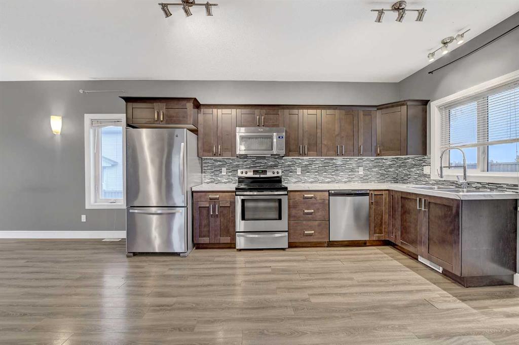Investor or multi-family opportunity! This legal up/down duplex in Grande Prairie offers great value and strong rental potential. The upper suite features 3 bedrooms, 2 bathrooms, a bright open-concept layout, modern finishes, and access to a large back deck. The lower suite is just as inviting with big windows, 2 bedrooms, a full kitchen, and its own laundry. Both units include stainless steel appliances and their own single attached garage. With great tenants, plenty of parking, and a convenient location, this property is ready for your portfolio!