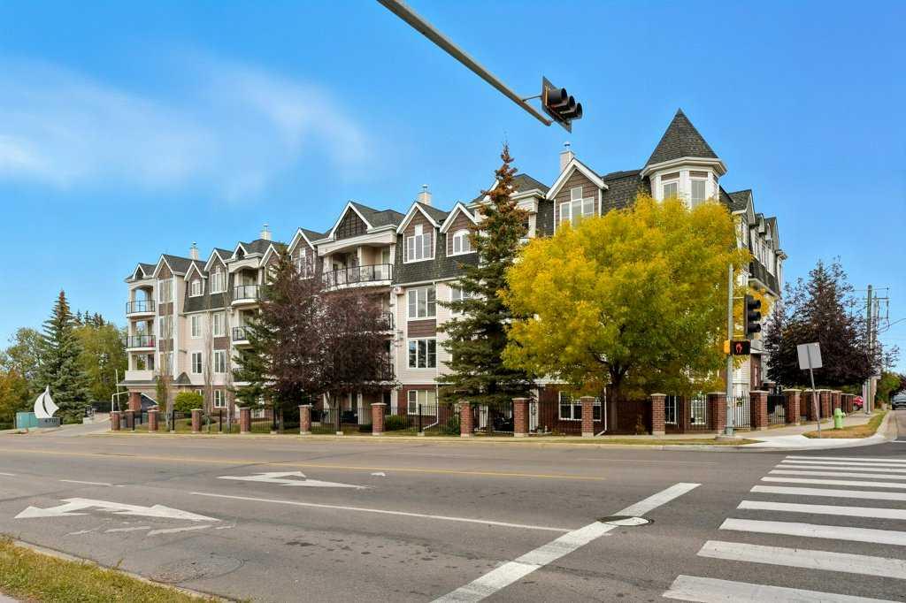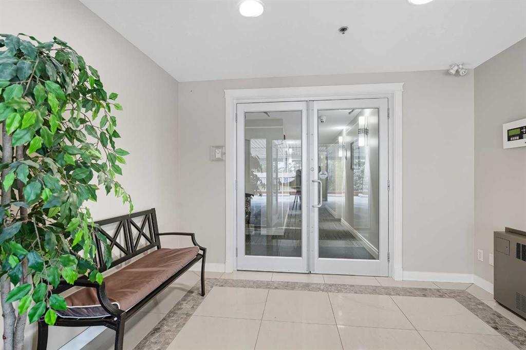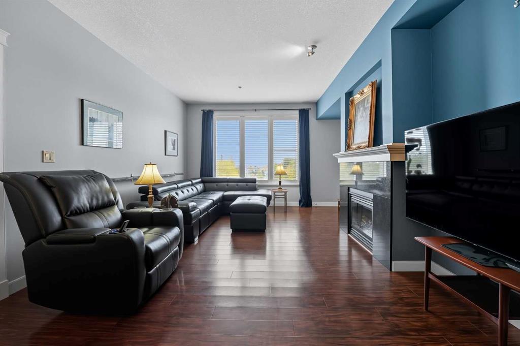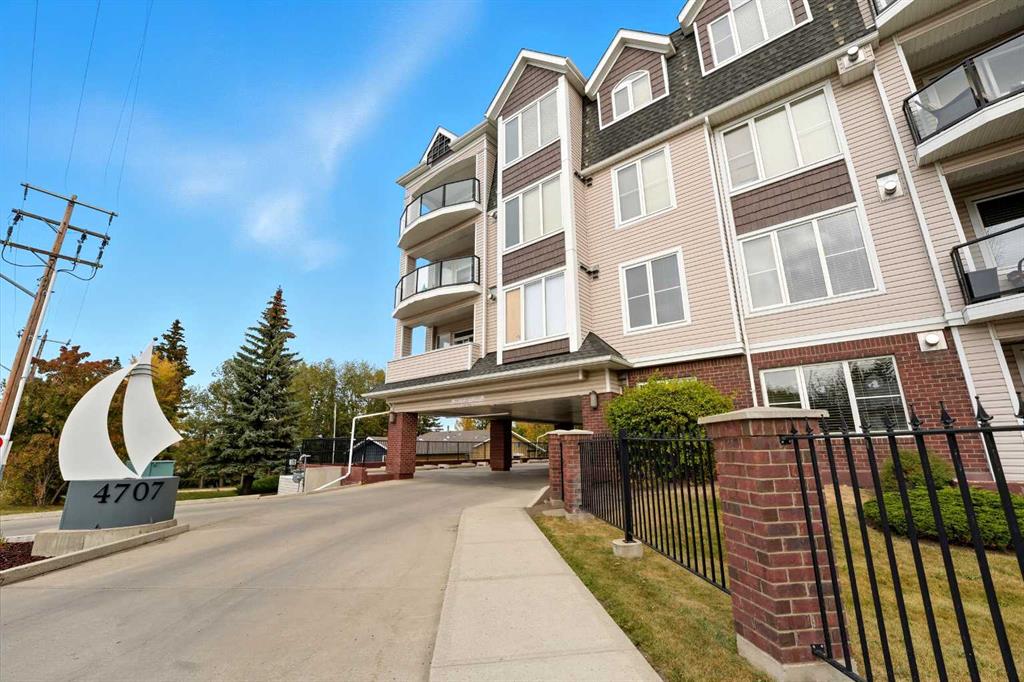 Welcome to The Watermark, an upscale and beautifully maintained condo complex located in the heart of Sylvan Lake. This large corner unit, one of the largest in the building at 1,146 sq. ft., is situated on the quieter northeast side of the building. It features 2 spacious bedrooms and 2 full bathrooms, including a large soaker tub in the ensuite, offering a bright and functional open floor plan. The kitchen showcases granite countertops, an eating bar, and newer stainless steel appliances, while the living room is highlighted by a cozy gas fireplace.