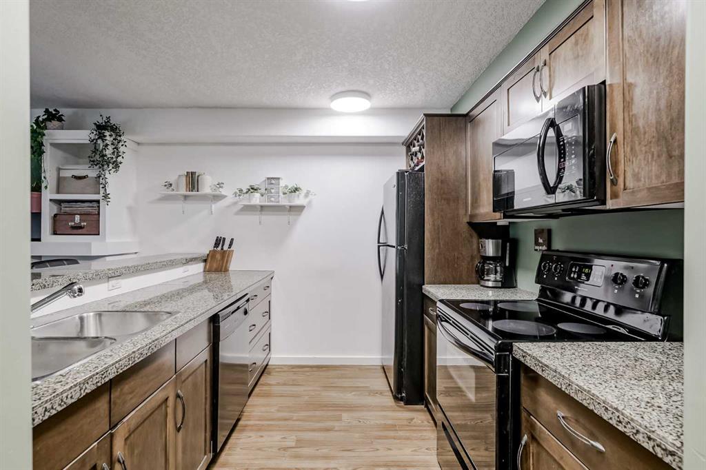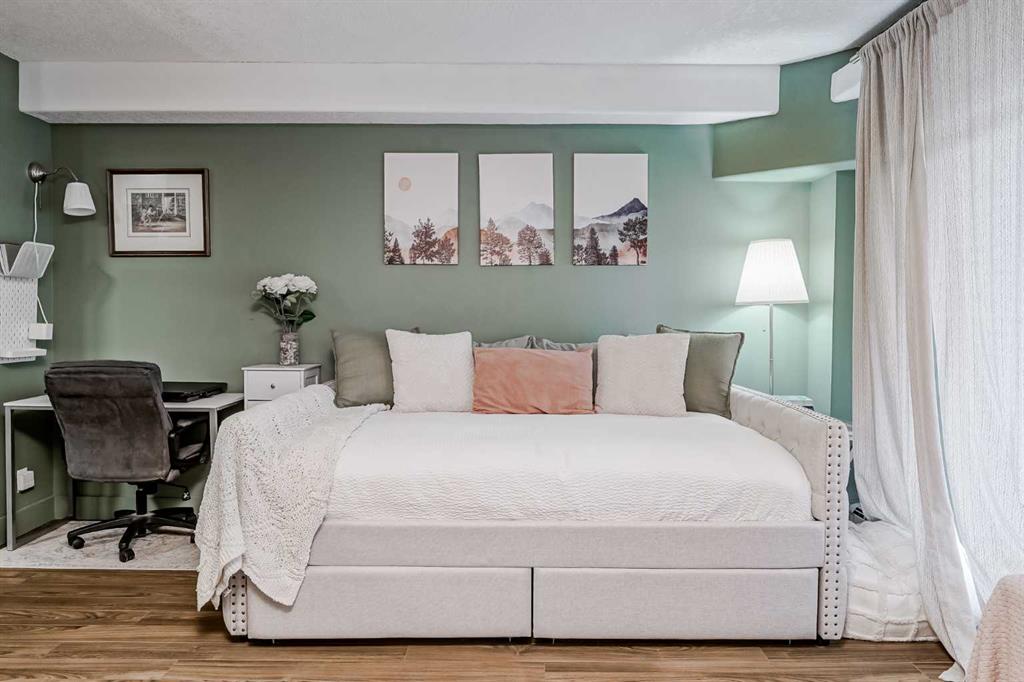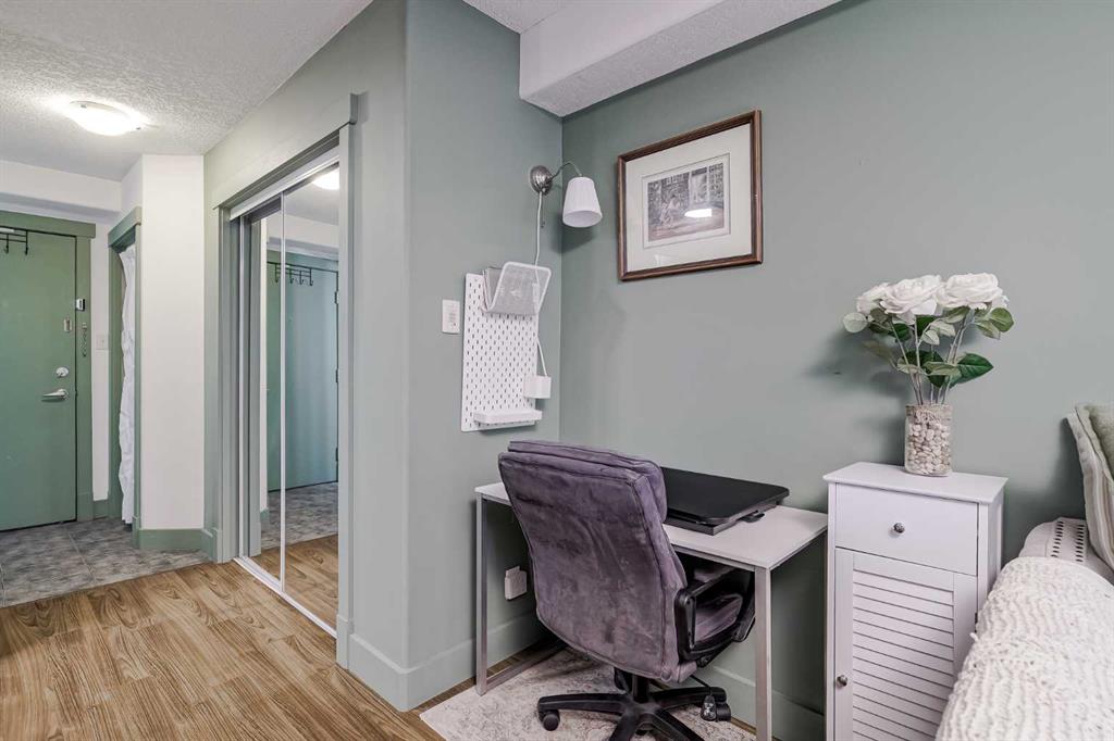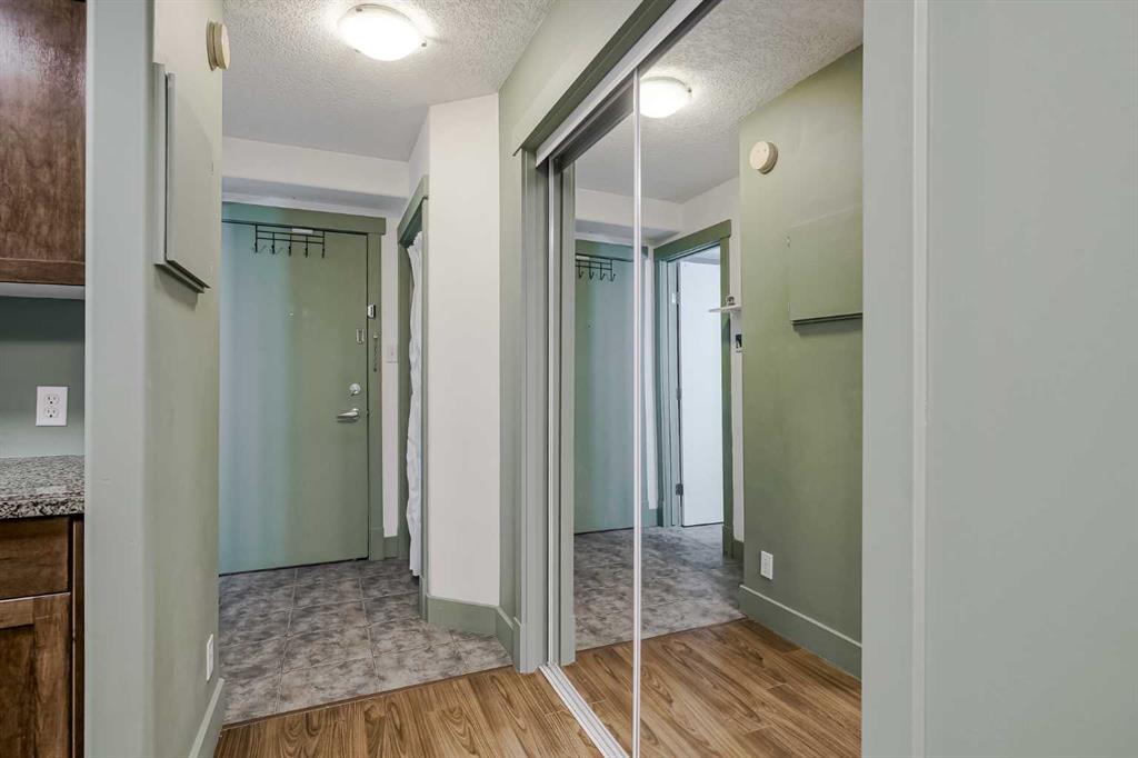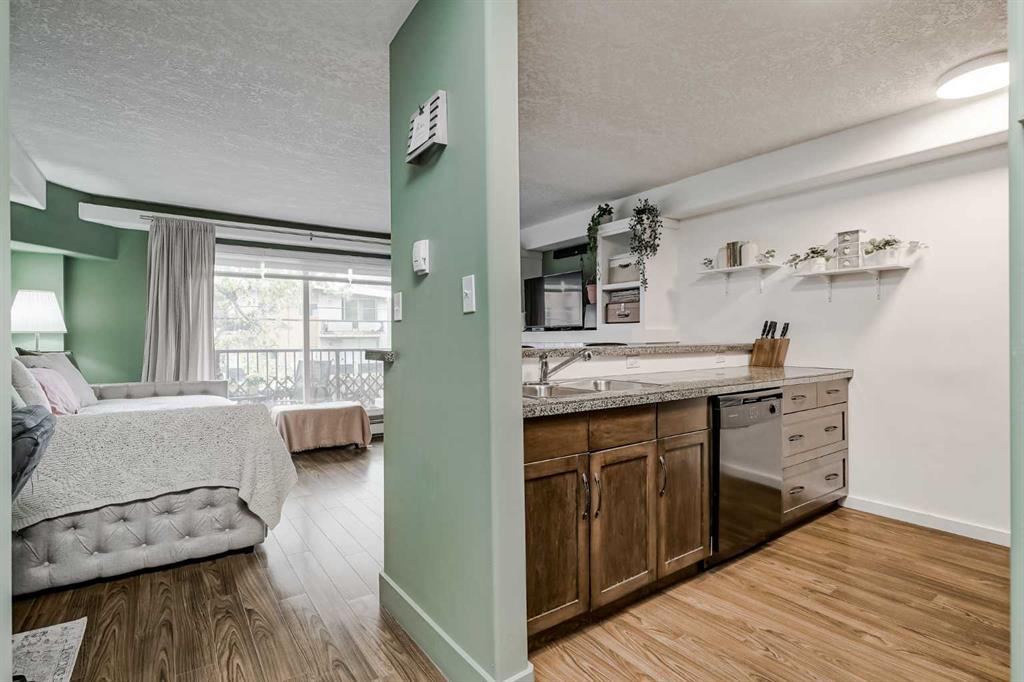 OPEN HOUSE Sunday October 12th 2pm-4pm. Perfect property for investors or a first-time owner. Unbelievable price for this open concept studio apartment, minutes from downtown in the sought after neighbourhood of Crescent Heights! You’ll be amazed at how much storage and counter space you have in this open to living space kitchen with granite countertops, breakfast bar seating and rich walnut coloured wood cabinets paired with sleek black appliances. Relax beside your built-in electric fireplace on those cold winter nights or enjoy the outside on your oversized south facing balcony in the summertime. This is a rare opportunity to own under the $150,000 price point with in-suite laundry, laminate flooring, dedicated parking with a plug-in, full bathroom with soaker tub and low condo fees. Enjoy the proximity to downtown, Bow River biking / walking pathways, Eau Claire, Prince\'s Island Park and all the shops, amenities and restaurants of Edmonton Trail and neighbouring Bridgeland. Step into the perfect blend of convenience, comfort and affordability.