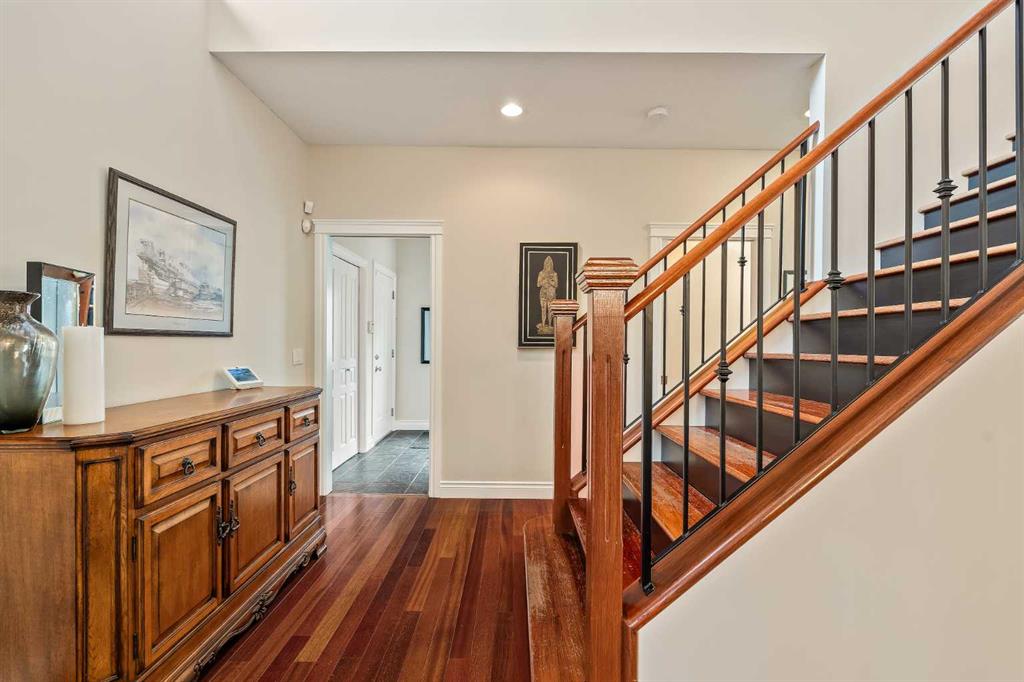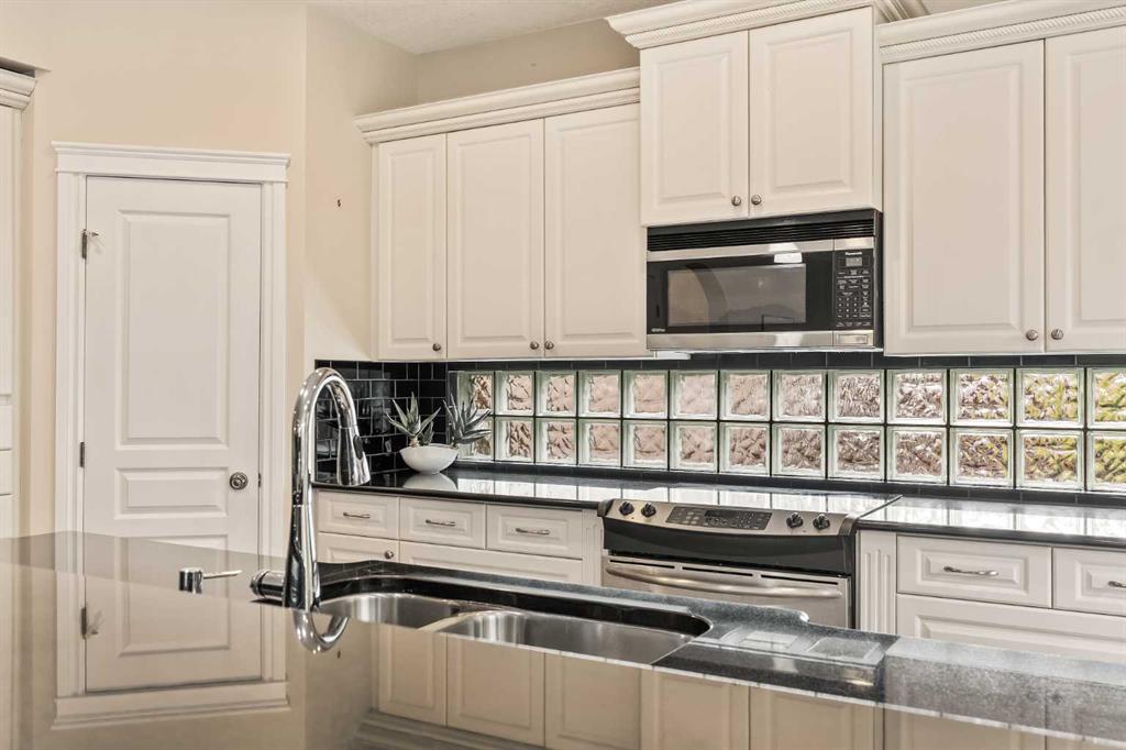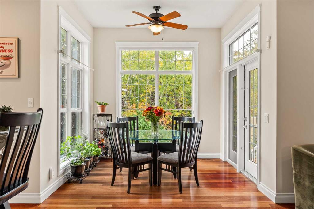 Welcome to 74 Rockborough Park NW — a beautifully crafted custom home perfectly positioned on a quiet street and backing onto a tranquil treed reserve, offering unmatched privacy and a true connection to nature. From the moment you arrive, the home’s timeless curb appeal and thoughtful design are evident. Inside, gleaming hardwood floors, 9-foot ceilings, and expansive windows create an open, inviting atmosphere filled with natural light. The living room features a cozy gas fireplace framed by mature greenery outside, while the adjoining kitchen impresses with stunning black granite countertops, stainless steel appliances, a massive island ideal for entertaining, and a walk-through pantry that adds both style and convenience. A separate formal dining room provides the perfect space for hosting family dinners or celebrations. Upstairs, the primary suite is a true retreat — generously proportioned with its own gas fireplace, a comfortable sitting area, and hardwood floors that add warmth and sophistication. The spa-inspired ensuite features dual vanities, a deep soaker tub, and a large walk-in shower with dual showerheads, complemented by an expansive walk-in closet. Two additional bedrooms, a full bathroom, laundry room, and a bright lofted den with built-ins complete the upper level, offering the ideal mix of comfort and functionality for family living. The west-facing backyard is a private sanctuary surrounded by mature trees — a perfect space for outdoor dining, kids playing, or simply relaxing in the peaceful setting. The freshly painted interior adds a clean, modern feel throughout, while an oversized double garage and central A/C provide year-round comfort and convenience. The unfinished basement offers endless possibilities for future development, with space for additional bedrooms, a recreation room, or home gym. Set in one of Rocky Ridge’s most desirable locations, this home is steps from walking trails, parks, and the award-winning Rocky Ridge YMCA, with easy access to major routes and transit. Combining elegance, comfort, and a rare sense of privacy, this exceptional property embodies the best of Northwest Calgary living.