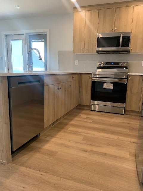 Be the first to live in this beautifully built main level suite, offering modern design and comfortable living in a quiet neighborhood. This home features three spacious bedrooms and two full bathrooms, perfect for families or roommates. The brand new kitchen is equipped with modern appliances and plenty of counter space, opening into a bright living area with durable vinyl flooring throughout. Enjoy your own private patio and fenced yard, plus a separate parking pad and entrance for complete privacy. In-suite laundry and climate control ensure year-round comfort. Utilities are separately metered, and the suite has its own dedicated yard space for your enjoyment. AVAILABLE: Now. RENT: $2000.00 Utilities Included except internet/cable. **NO PETS ALLOWED** APPLICATION REQUIRED PRIOR TO VIEWING. SECURITY DEPOSIT: $1800
