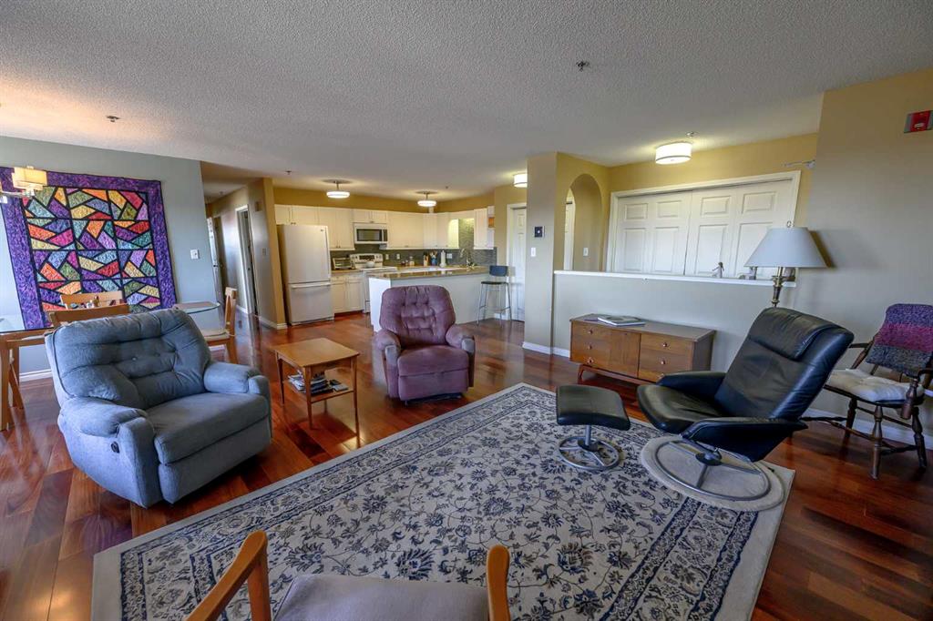 Downtown Condominium Living at its Finest! Experience Market Manor - comfort, convenience, and class in this beautifully designed 2 bedroom, 2 bathroom condominium located right in the heart of Grande Prairie. Perfect for professionals, couples, or small families looking for a modern urban lifestyle. It is close to everything - shopping, restaurants, library, healthcare, recreation & other professional services. Spacious and open design in this unique fully renovated condominium. Enjoy quality hardwood and tile flooring, lovely kitchen with white cabinets and granite counters, new windows just installed, the master bedroom has a private ensuite and walk in closet, separate laundry room with storage, and Air Conditioning for warmer days. Designed in the middle of this concrete building is a large atrium common area with high ceilings with skylights that offer tons of natural light; it is a wonderful space to gather for social events to enjoy your friends & family or just have a walk around in the colder months. This is a secure, well-maintained building with many recent upgrades and heated underground assigned parking. There is a car wash by in the underground heated parking and the entrance ramp is heated so no ice accumulates. The monthly condominium fee is $588.33 and includes heat, water, sewer, garbage & recycling, interior & exterior maintenance of common areas, professional management, building insurance & reserve fund contributions. This is an extremely nice unit! Take a look today!