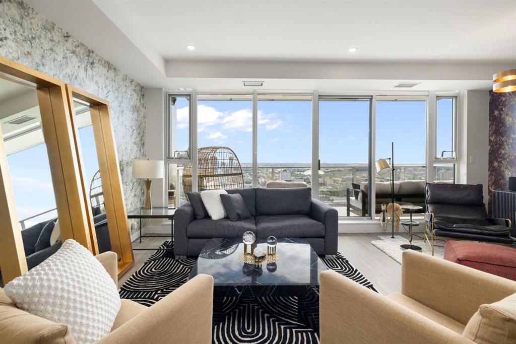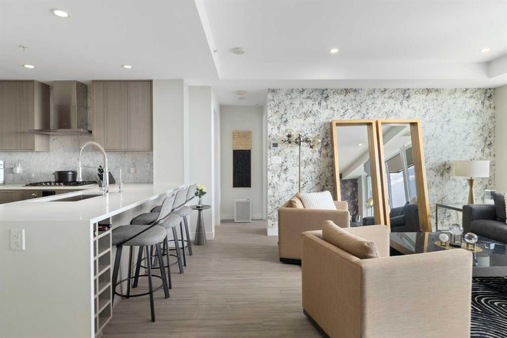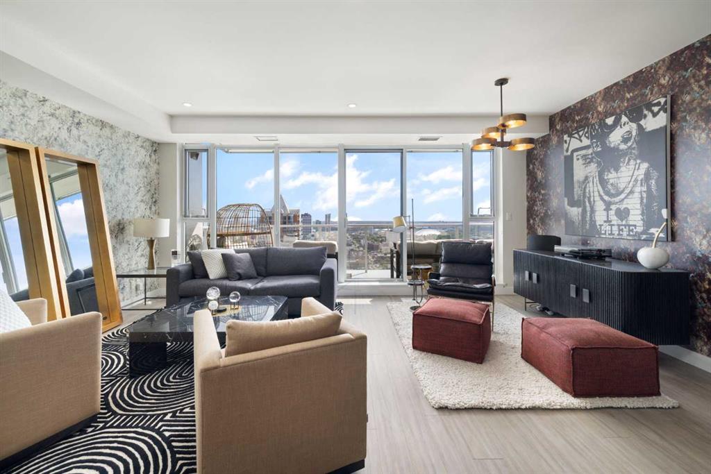 --- CHECK OUT VIDEO TOUR --- Live Royal! Unique and unparalleled, this Sky-Suite presents style and finishings that dreams are made of. 24-hour security/concierge and three high-speed elevators provide safe, seamless access day and night. As you enter you are greeted by a bright, open-concept design with floor-to-ceiling windows that showcase stunning city views and the warmth of the morning sun. The gourmet kitchen is a true highlight, featuring Bosch appliances, quartz countertops, full-height cabinets, under sink Reverse Osmosis water filter with additional remineralization filter for premium water, and a spacious breakfast bar perfect for entertaining. The adjacent dining and living areas are flooded with natural light and offer direct access to a large balcony, ideal for morning coffee or evening gatherings against the breathtaking backdrop. The spacious primary bedroom also boasts fantastic views from a second private patio, creating a serene retreat. Fully custom power blinds allow you to shut down the city for full relaxation. The stylish bathroom includes a deep soaker tub, double vanity, and heated flooring for extra comfort during those cool mornings. Additional features like in-suite laundry, underground parking, and a separate storage locker are included for added convenience. The building offers a wealth of amenities, including a 10,000 sq. ft. \"Club Royal\" with an elevated garden terrace, BBQs, steam room, sauna, gym, squash court, owner’s lounge, chef\'s kitchen, and private dining area. With a walk score of just under 90, The Royal building’s location is perfect for anyone looking to enjoy the countless parks, amenities, and transit options to enjoy downtown Calgary’s vibrant and trendy lifestyle. Don’t wait, come be a part of the Royal family!