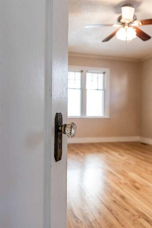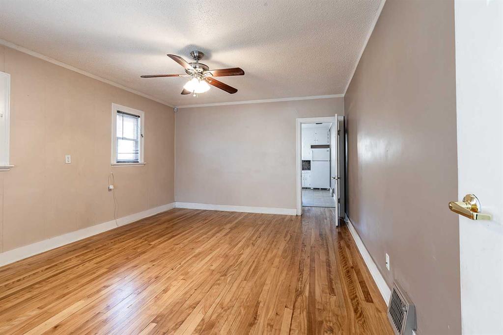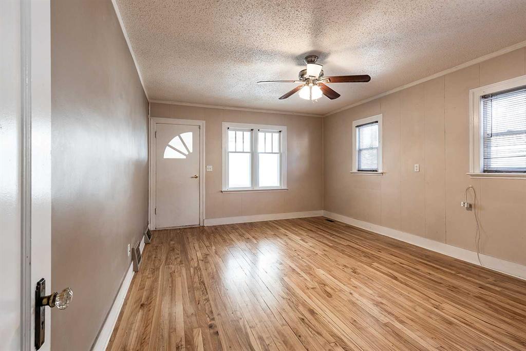 This centrally located South Flats bungalow offers both character and potential. The main floor features two bedrooms, a full bathroom, and beautiful original hardwood floors throughout that have been refinished. A bright front sunroom porch, an additional 120 sq ft, provides a relaxing spot to enjoy natural light. The basement includes a den/office, cold storage, and laundry, offering versatile space to suit your needs. Outside, a 20’ x 12’ detached garage with power is perfect for projects, storage, or hobbies. There is a paved parking pad beside the garage. The home has some updated vinyl windows, updated electrical, and the yard is fully fenced with potential for RV parking. The lot is 6500 sq ft making it large enough to build a much larger garage. There is a garden space and plenty of room for big ideas! A great choice for first-time buyers looking for a functional home or investors seeking opportunity, this property is just minutes from downtown Medicine Hat, local parks, and amenities. Contact a real estate agent today to explore this South Flats bungalow!
