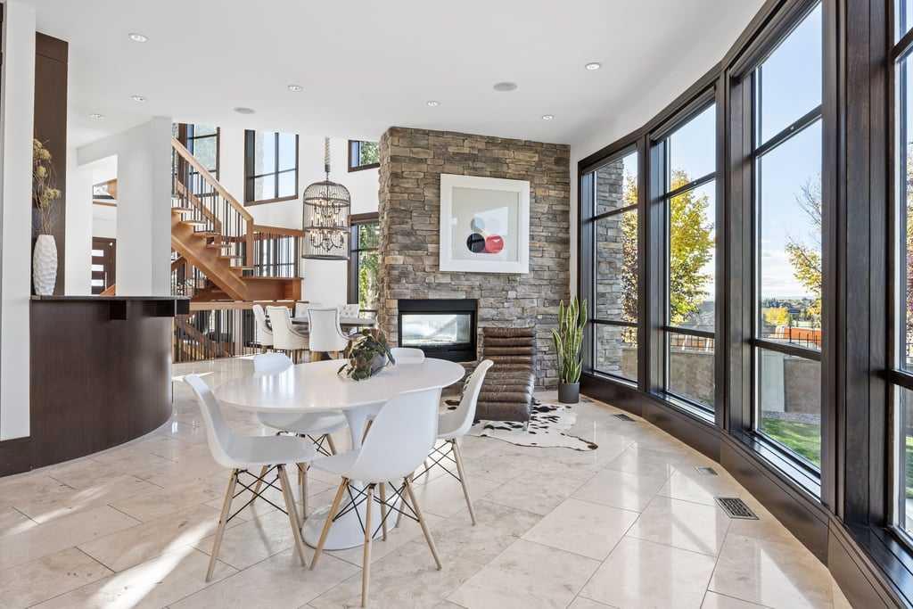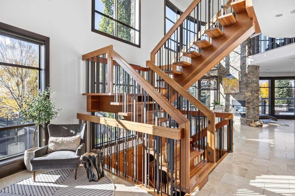 Every element has been meticulously curated. Rosewood cabinetry and solid doors, a Jatoba floating staircase, and heated limestone and hardwood floors create a seamless blend of warmth and refinement. Soaring 10-ft ceilings on the main level and 9-ft ceilings on the lower level enhance light and volume, while Montego linear fireplaces bring contemporary ambiance to the living spaces.