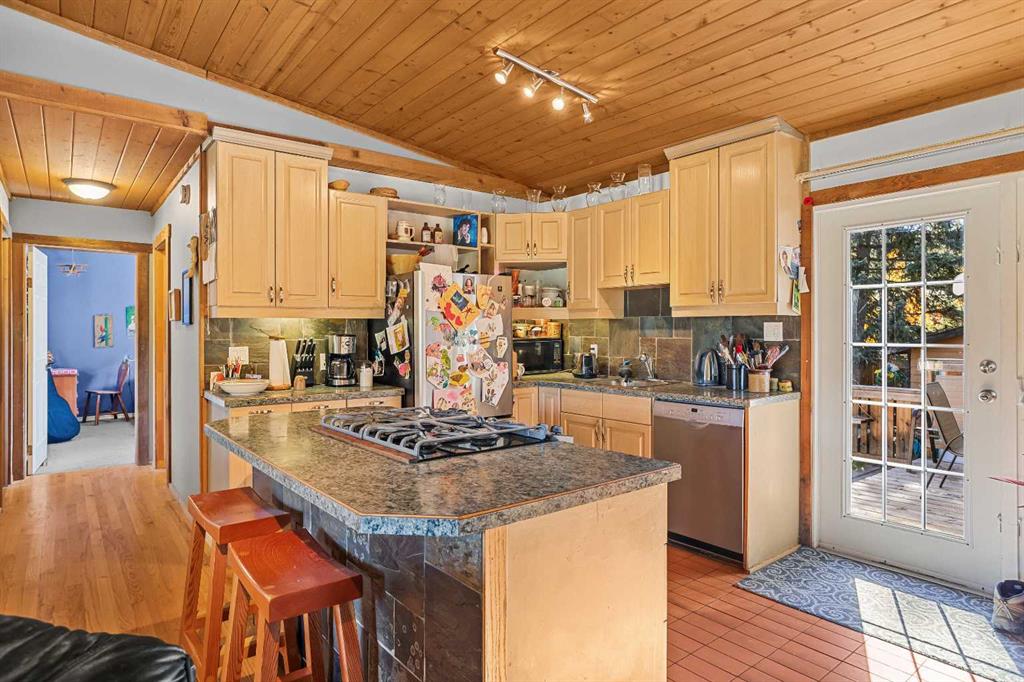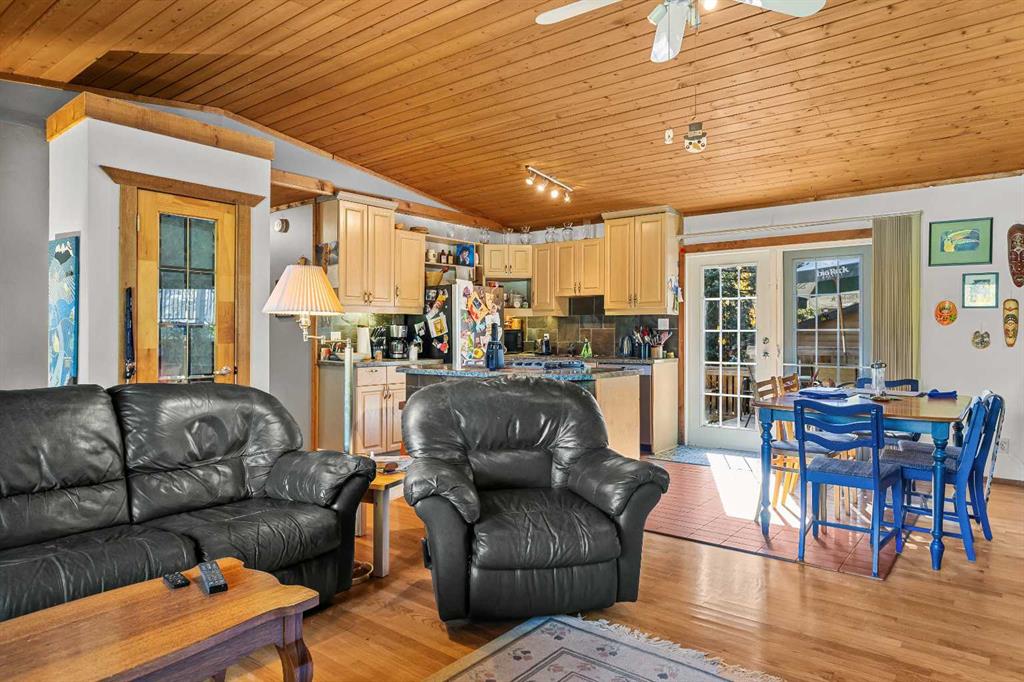 A charming 3-bedroom, 2-bathroom single-family home nestled in the highly sought-after Lions Park neighborhood of Canmore. This 2,195 sq. ft. residence is filled with timeless mountain character and warmth. The inviting interior features wood-paneled cathedral ceilings and an open-concept layout that perfectly blends comfort and functionality. The spacious living and dining areas are ideal for entertaining or relaxing while enjoying breathtaking mountain views. Each bedroom is generously sized, offering comfort and flexibility for family or guests. Outside, you’ll find a fenced yard and private back deck, creating a peaceful retreat to take in the mountain air. A double detached garage and large storage shed provide ample space for vehicles, tools, and mountain gear. The basement offers excellent potential for a legal suite, making it ideal for added income or extended family living. Perfectly situated just steps from parks, schools, downtown Canmore, and an extensive network of hiking and biking trails, this home offers the perfect balance of charm, character, and convenience in one of Canmore’s most desirable neighborhoods.