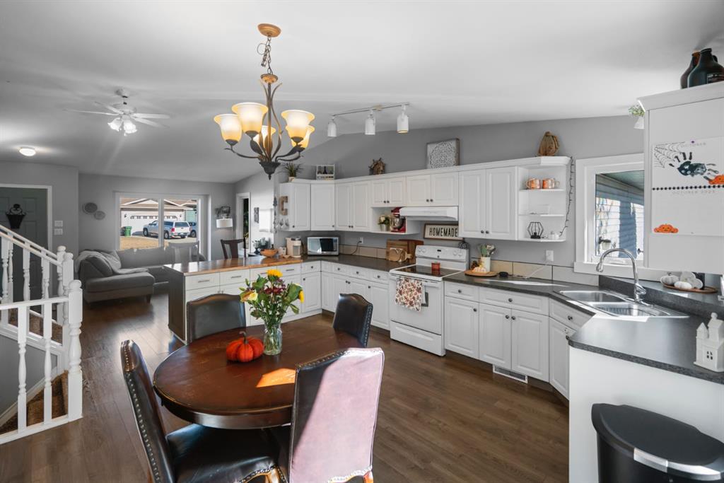 This beautiful 4 level split home is in a great location in a great neighbourhood on a large corner lot! With walking distance to playgrounds, golf course, and fantastic shopping. Featuring brand new windows throughout, vaulted living room, and a bright open concept layout on main floor, makes this home very warm and welcoming. The kitchen has a beautiful live-edge island perfect for entertaining or casual family meals. Upstairs you\'ll find 2 large bedrooms and a 4 piece bathroom. The lower level offers another bedroom and adjoining 4 piece bathroom and recreation room- perfect for cozy nights in. With another level to go- more space for a gym, office, or additional toys. Outside you\'ll notice the brand new partial fence and a large backyard with a deck and stoned area. A double attached garage with tons of street parking compete this fantastic home.