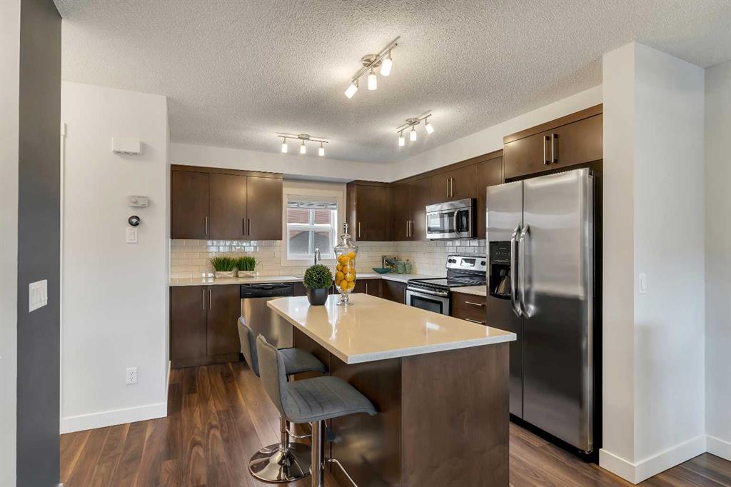 Immaculate END UNIT townhouse in the most DESIRABLE location of the complex! This stunning home offers a 30-foot-plus TANDEM GARAGE with sleek EPOXY flooring, giving you ample space for vehicles, storage, or a workshop area. Step inside to find FRESH PAINT throughout, durable and LAMINATE flooring spanning the space, NEW BLINDS & HOT WATER TANK in this well-cared-for property, you don\'t need to lift a finger! The main floor is designed for entertaining and everyday living, featuring an OPEN CONCEPT layout with a spacious living room, dining area, and a stylish kitchen with QUARTZ countertops, TIMELESS tile backsplash, sleek STAINLESS STEEL appliances and a CENTRAL ISLAND perfect for additional seating and food prep. A convenient powder room and EAST and WEST window exposure flood the home with NATURAL LIGHT, making the space feel airy and inviting. Upstairs, you\'ll find two generous bedrooms perfect for guests, roommates or a home office, a full four-piece bathroom, an upstairs laundry, and a SPACIOUS primary suite with its own en-suite bathroom, which is your perfect private retreat. As a STREETSIDE end unit, this home offers plenty of guest parking and enhanced PRIVACY. Located in Kings Heights, you\'re just minutes from shopping, pathways, schools, and have quick access to 40th Avenue for easy commuting in and out of the city. This is the perfect opportunity for first-time home buyers or investors to step into a meticulously maintained, MOVE-IN-READY home that truly stands out.