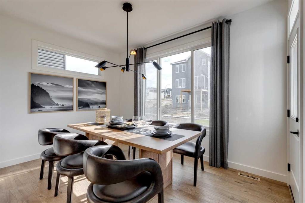 Enjoy an executive kitchen with built-in stainless steel appliances, gas cooktop, waterfall island, and walk-through pantry. The main floor features LVP flooring, a mudroom with walk-in closet, and a flex room with double French doors. Relax by the gas fireplace with mantle in the great room or soak in the natural light in the spacious front bonus room. Upstairs offers a luxurious 5-piece ensuite with walk-in shower, soaker tub, quartz countertops, undermount sinks, and banks of drawers in both the ensuite and main bath. This energy-efficient home is Built Green certified and includes triple-pane windows, a high-efficiency furnace, and a solar chase for a solar-ready setup. With blower door testing, plus an electric car charger rough-in, it’s designed for sustainable, future-forward living.