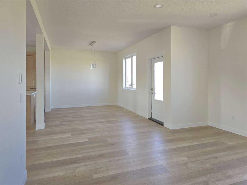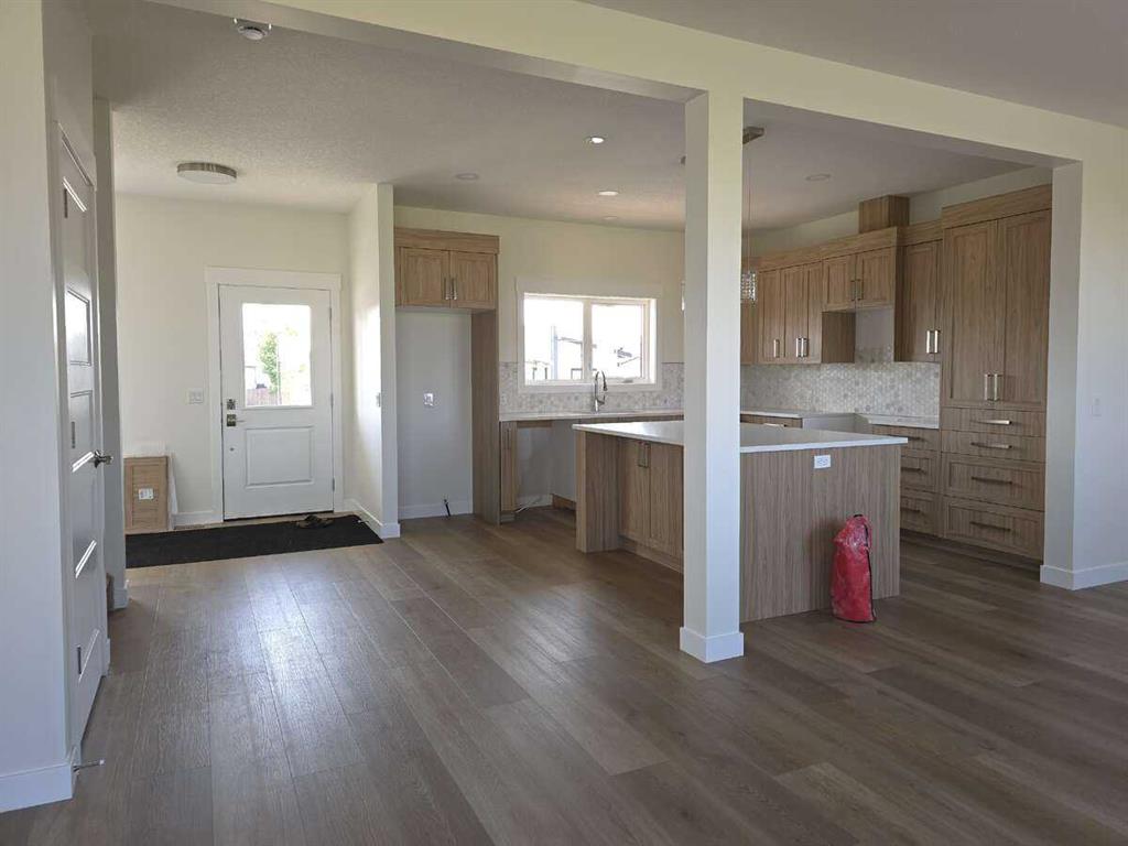 For more information, please click the \"More Information\" button. Welcome to this thoughtfully designed and newly-constructed 2-story home with 1626 square feet of developed living space. The front of the home host a wide porch that leads into a spacious south facing front entry. A large sunny front entry opens to the main floor with unobstructed views of the back yard. The main floor, facing north, opens into a combined kitchen, dining and living room area with nine foot ceilings. With the big, blue sky on display out the back windows the prairie offers up an undeniable feeling of wide open space. Upstairs there are three rooms, 1 primary bedroom with walk-in closet and ensuite, 2 secondary bedrooms alongside a full bathroom, that once again allow sunlight directly into the upstairs. Other interior features include a basement with 9-foot ceilings, ICF and drywall installed. All providing improved energy efficiency, enhanced durability, and superior soundproofing. Outdoor features include a large deck off the back and a sunny front veranda. The backyard has lane access and ample space for a parking pad or up to a 1,200 square foot workshop/garage. One of this home\'s most notable points is that it is walking distance to the Cayley School (K-8) and an 11 minute country drive to the High River High School. With easy access to Hwy 2, the amenities of High River, Okotoks and Calgary are close by. Stony Trail is only a 35 minute drive away. A true gem!