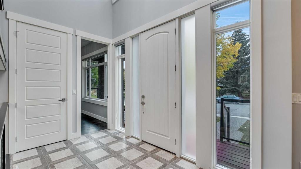 Nestled just steps from the serene Bow River pathways and the lush beauty of Elbow Park, this exquisite residence offers the perfect balance of nature, luxury, and urban convenience. Ideally situated near the Alberta Children’s Hospital, Foothills Hospital, and Market Mall, every essential—whether shopping, recreation, or emergency care—is mere minutes away. Behind the property, tranquil walking and cycling trails invite you to unwind and reconnect with the outdoors. Set on a generous 45-foot lot in Calgary’s highly sought-after inner-city enclave of Parkdale, this stunning stucco home is a showcase of architectural sophistication and exceptional craftsmanship. Spanning over 4,000 sq.ft. of opulent living space, including 2,573sq.ft. above grade, it features five spacious bedrooms and four-and-a-half luxurious baths. From the moment you enter, the home’s grandeur is undeniable—beginning with a soaring 19-foot foyer, beautifully tiled floors, and a dramatic open-riser staircase that exudes modern artistry. Expansive windows flood the open-concept interior with natural light, highlighting fine finishes and elegant design details throughout. The main living area is anchored by a sleek gas fireplace, offering both warmth and sophistication—a perfect setting for relaxed evenings or formal gatherings. The chef-inspired kitchen is a true statement of luxury, boasting a large granite island with breakfast bar, two-tone custom cabinetry, a built-in wine cooler, and an elite JennAir appliance package. French doors lead seamlessly to an oversized patio, ideal for al fresco dining and entertaining, complete with a rough-in BBQ gas line and integrated sound system. A spacious main-floor office or flex room, along with a refined powder room, completes this impressive level.