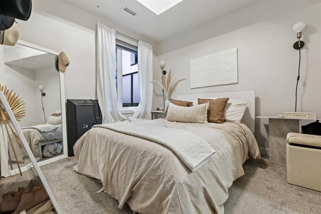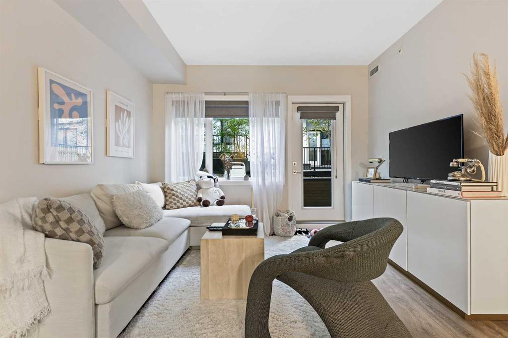 Welcome to COCO — a contemporary gem that captures the essence of upscale urban living in the heart of vibrant Marda Loop. Designed with modern sophistication in mind, this air-conditioned one-bedroom residence offers a seamless blend of style, comfort, and functionality. Tall 9-foot ceilings and sleek laminate floors create an airy, open feel throughout, while the thoughtfully designed layout maximizes every inch of space. The kitchen stands out as a true showpiece, featuring premium stainless steel appliances including a gas convection range and concealed slide-out hood fan. Full-height cabinetry provides ample storage, while polished quartz countertops and an extended dining peninsula create the perfect balance of beauty and practicality for cooking, dining, or entertaining. The open-concept living area is bright and welcoming, bathed in natural light from large windows and flowing effortlessly onto a spacious private patio complete with a gas line—ideal for summer evenings and outdoor gatherings. The bedroom offers a peaceful escape, with a walk-through closet leading to a stylish 4-piece bath finished with quartz counters, ceramic tile, and a fully tiled tub/shower surround. Added conveniences include in-suite laundry with a full-size washer and dryer, plus a titled, heated underground parking stall for year-round comfort. COCO is a pet-friendly community that emphasizes modern convenience and lifestyle. Low condo fees cover heat, water, and access to exceptional amenities such as secure bike storage, guest parking, a rentable guest suite, a multi-use lounge, an indoor dog wash, a water bottle refill station, and a beautifully landscaped courtyard. Perfectly situated steps from shops, restaurants, cafés, fitness studios, parks, and public transit, COCO places you at the center of everything Marda Loop has to offer. With its refined finishes, practical design, and unbeatable location, this stunning home delivers the ultimate in contemporary city living. Book your private viewing today and experience the COCO difference.