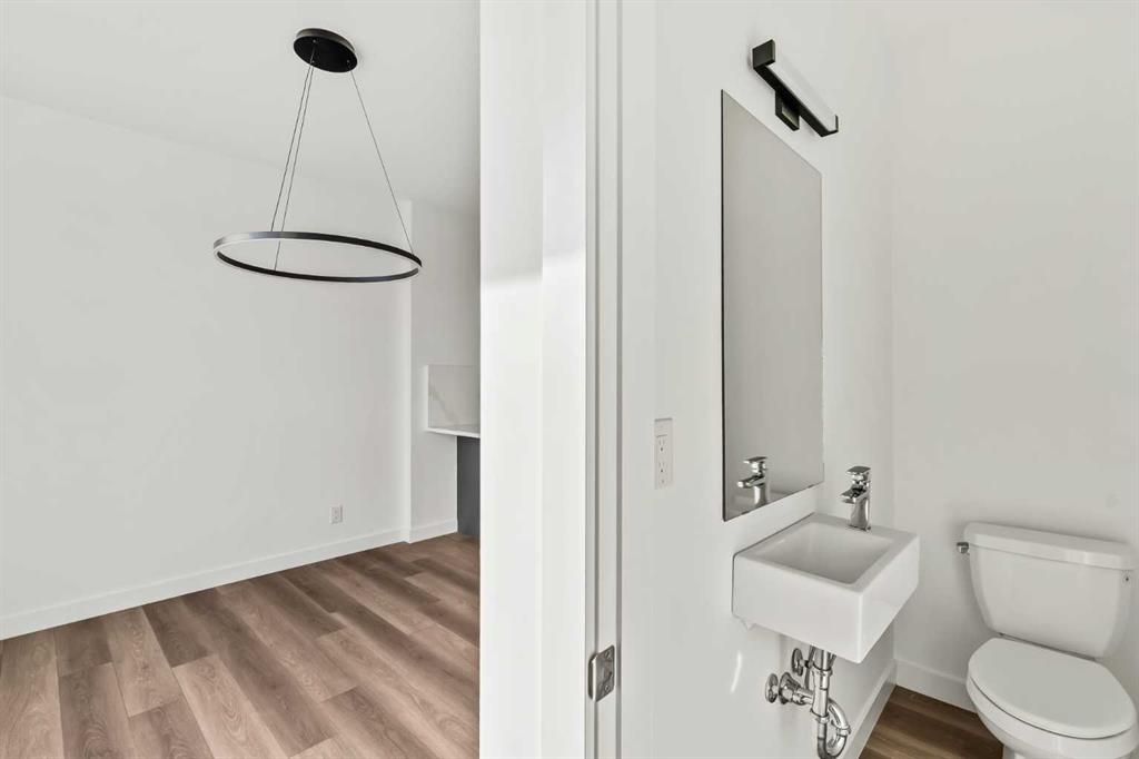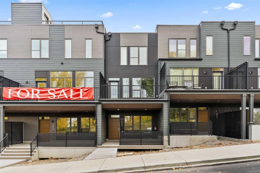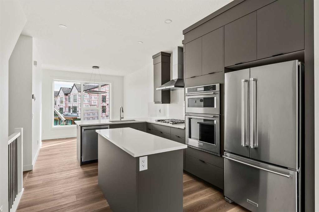 Welcome to The Alameda by Brookfield Residential - where modern design meets urban convenience, just minutes from downtown Calgary with stunning views! This beautiful 2-bedroom, 2.5-bathroom townhome offers over 1,400 sq. ft. of thoughtfully designed living space, complete with a single attached garage and a spacious main-level flex room - perfect for a home office, gym, or creative studio + 3 outdoor living spaces including a rooftop patio! The lower level features an expansive flex room spanning ~14\'x14\' with soaring 10\' ceilings and a wall of windows overlooking your private patio and the front street. Experience open-concept living on the main level highlighted by 9’ ceilings throughout with oversized triple-pane windows at either end providing endless natural light all year long. The kitchen is a chef’s dream, featuring KitchenAid gourmet appliances, including a gas cooktop, wall oven/microwave, and a chimney hood fan, all complemented by elegant finishes and generous counter space and a pantry. The kitchen is central to the main level, opening to both the dining area and great room, creating the ideal space for entertaining. The great room has direct access to the main level balcony that spans 15\' x 9\'8\" and includes a BBQ gas line for everyday convenience. The upper level features a large primary suite complete with walk-in closet and a private 4pc ensuite with dual sinks and a tiled walk-in shower. A large second bedroom, full bathroom and laundry complete the upper level. The top level of the home is where you\'ll spend your summers - soaking up the sun on your private ~200 ft2 rooftop patio with views overlooking the Shaganappi golf course! Complete with 2 living areas, 2 bedrooms, 2.5 bathrooms and 3 outdoor living spaces + a private attached garage, this home is perfect for professionals or down-sizers that appreciate convenience. Located away from Bow Trail, this premium location offers a quiet space for daily living with convenient access to the CTrain and downtown Calgary just minutes away. Additional features include A/C rough-in, convenient street parking in front, and full builder warranty + Alberta New Home Warranty - allowing you to purchase with peace of mind. This maintenance-free home is fully move-in ready in desirable Crown Park!