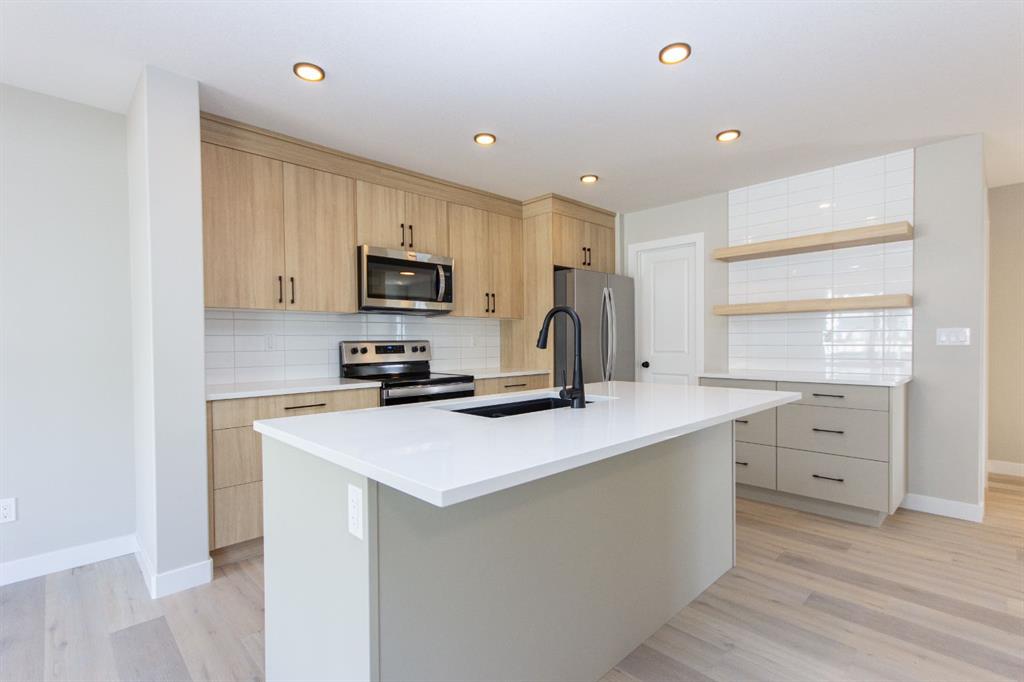 Be the first owner of this brand new Laebon Home situated close to parks, playgrounds, a school, and the numerous amenities of Timberlands and Clearview Market! Offering 1707 square feet, this 2 storey Paxton floorplan offers a wide open main floor layout, an attached double garage, and a large second floor bonus room! The kitchen is well appointed with two tone raised cabinetry, stainless steel appliances, quartz countertops, a large island with eating bar, and a large walk in pantry. The living area is spacious and bright, and the adjacent dining area offers access to the back deck through large sliding patio doors. Upstairs you\'ll find the spacious master bedroom suite with a large walk-in closet, and your own private 4 pce ensuite. Two kids rooms share a 4 pce bathroom, and you\'ll appreciate the convenience of upper floor laundry close to all the bedrooms. You\'ll love ending your day in the huge bonus room, which makes the perfect space for family movie nights or a relaxing space to wind down. The attached garage is insulated, drywalled, and taped. If you need more space, the builder can complete the basement development for you, and allowances can also be provided for blinds, and a washer and dryer to make this a completely move in ready package. 1 year builder warranty and 10 year Alberta New Home Warranty are included. Taxes have yet to be assessed. Immediate possession available!