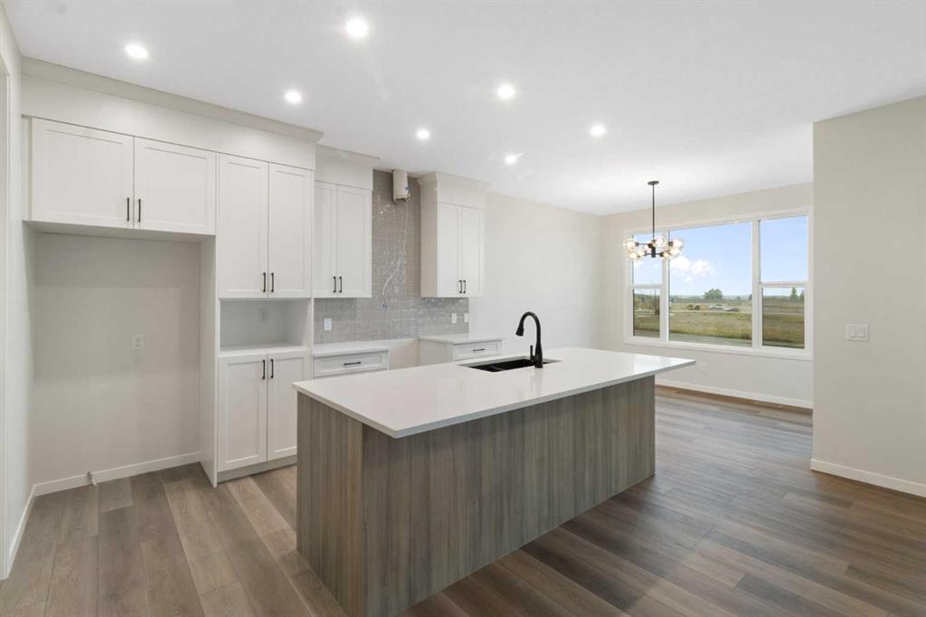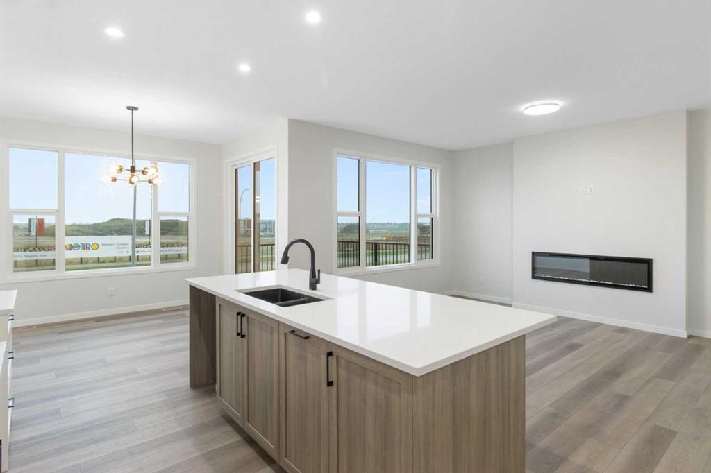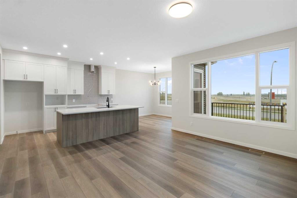Welcome to your next chapter in the vibrant and growing community of Belmont in SW Calgary. This is a neighbourhood known for its family-friendly atmosphere, scenic pathways, and quick access to shopping, schools, and major routes like Macleod Trail and Stoney Trail. Whether you\'re a growing family or looking for multigenerational flexibility, this 5-bedroom home checks all the boxes. Step inside and be greeted by light brown luxury vinyl plank flooring that flows seamlessly throughout the open-concept main floor. A versatile main floor bedroom perfect for guests, a home office, or family members, sits beside a full 3-piece bathroom for added convenience. The heart of the home is the upgraded chef-inspired kitchen, where bright white perimeter cabinets are beautifully balanced by a warm wood-toned island, upgraded designer backsplash tile, sleek quartz countertops, and striking black hardware throughout. You’ll get to choose your own appliances with an allowance of $7000 from the builder’s supplier. The kitchen overlooks both the spacious great room featuring a beautiful electric fireplace and sunny dining nook, creating an effortless flow for entertaining and everyday living. Off the dining area, step out to your rear-facing deck, perfect for summer BBQs and outdoor relaxation. Upstairs, cozy carpet welcomes you to a thoughtfully laid-out second level featuring a central bonus room ideal for movie nights or a kids’ play zone. The primary bedroom is a true retreat, complete with a spa-inspired ensuite (double vanities and a walk-in shower) and a generous walk-in closet. Three more bedrooms, a full bathroom, and an upper-floor laundry room round out this functional upper level. An attached garage adds convenience, and the unfinished walkout basement offers room to grow or customize to your lifestyle. Bonus: the basement is roughed in for a future legal suite (subject to permitting and approval by the city)! Create your backyard oasis with a $2,000 landscaping allowance to be provided to the buyer upon completion of landscaping. Whether you\'re looking for more space, smart design, or a modern aesthetic, this Belmont beauty offers it all, set in a community that blends nature, accessibility, and a strong sense of connection. Don\'t miss your chance to own in one of Calgary\'s most exciting new neighbourhoods - book your showing today! *Some photos are Virtually Staged.*