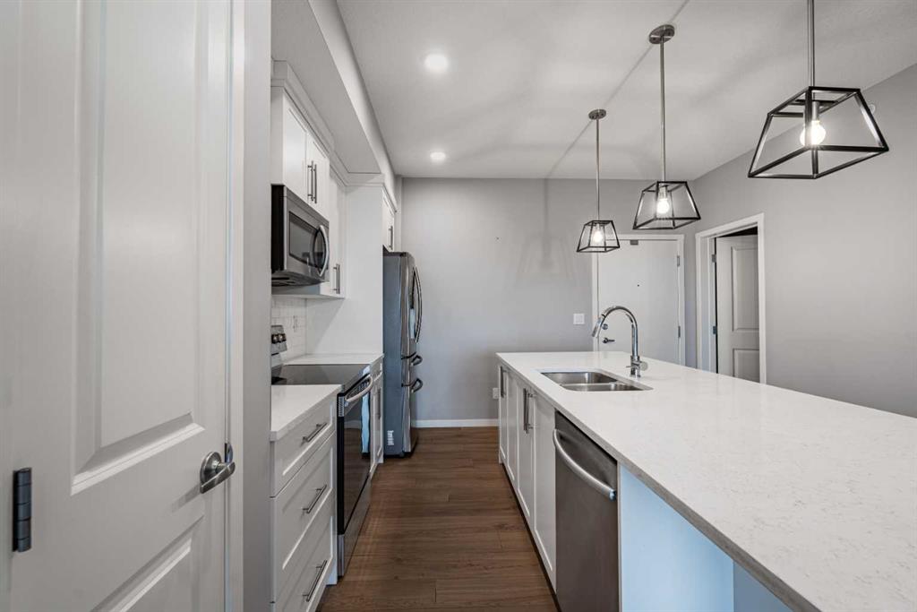 Welcome to your new home in the heart of Calgary’s vibrant Seton community! This stylish top-floor unit 401 at 4350 Seton Drive SE offers the perfect blend of space, modern finishes, and convenience. Featuring 3 spacious bedrooms and 2 full bathrooms, this home is ideal for families, professionals, or anyone looking to enjoy maintenance-free living with a touch of luxury. The open-concept layout is enhanced by large center island, luxury vinyl plank flooring, and large windows that flood the space with natural light. The contemporary kitchen boasts stainless steel appliances, quartz countertops, a generous island for entertaining, and plenty of cabinet space. Step out onto your private balcony and enjoy peaceful top-floor views. Additional highlights include: 2 titled underground parking stalls, in-suite laundry, secure storage locker, pet-friendly building. Located just steps from the South Health Campus, world-class YMCA, and a wide range of shopping and dining options, this home offers exceptional lifestyle convenience. With easy access to Stoney Trail and Deerfoot Trail, getting around the city is quick and simple. Don’t miss this rare opportunity to own a premium top-floor unit in one of Calgary’s most exciting communities. Book your private showing today!