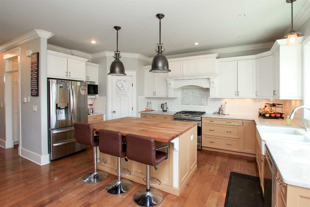 FULLY DEVELOPED 2-STOREY IN GARDEN HEIGHTS ~ WEST FACING BACKYARD WITH NO NEIGHBOURS BEHIND ~ CUSTOM BUILT HOME LOADED WITH UPGRADES ~ Covered front veranda welcomes you and leads to a 2-storey foyer ~ Open concept main floor layout is complemented by hardwood flooring and large west facing windows that fill the space with natural light ~ The stunning kitchen offers an abundance of custom cabinetry accented with crown moulding, ample stone counter space plus an unobstructed island with butcher\'s block, apron front sink with a window above, full tile backsplash and a walk in pantry with floor to ceiling shelving ~ Easily host a large family gathering in the spacious dining room with garden door access to the west facing deck with frosted glass privacy panels and duradek finish ~ Stunning two sided fireplace separates the living and dining rooms, has a mantle and space for a TV ~ Conveniently located home office is just off the foyer, has a closet for storage and large windows that overlook the covered veranda and front yard ~ Beautiful 2 piece main floor bathroom has a custom vanity and extensive tile ~ Huge mud room has built in bench and lockers, plus a large walk in closet, and easy access to the double attached garage ~ Open staircase leads to the upper level landing that overlooks the foyer below ~ French doors lead to the primary bedroom that can easily accommodate a king bed plus multiple pieces of furniture, and includes a spa like ensuite with dual sinks, heated tile floors, stand alone tub, walk in steam shower, water closet and a huge walk in closet with built in organizers ~ 3 bedrooms located on the upper level are all a generous size with ample closet space ~ 5 piece split bathroom is ideal for sharing, with dual sinks in one room and a separate space for the tub and toilet ~ The fully finished basement offers large above grade windows and operational in floor heating ~ The L-shaped family room has rows of recessed lighting, tons of room for a sitting area and rec space, and west facing windows with views of the park ~ 2 bedrooms (one currently being used as a craft room) share a 4 piece bathroom ~ Other great features include; maple railings, glass door knobs, custom lighting throughout, central air conditioning ~ The west facing backyard is landscaped, has well established fruit trees, a lower patio, and is fully fenced with access to the green space ~ 26\' L x 24\' W attached garage ~ Located in Garden Heights neighbourhood, with easy access to walking trails, multiple parks, playgrounds, many schools, excellent shopping plazas with all amenities.