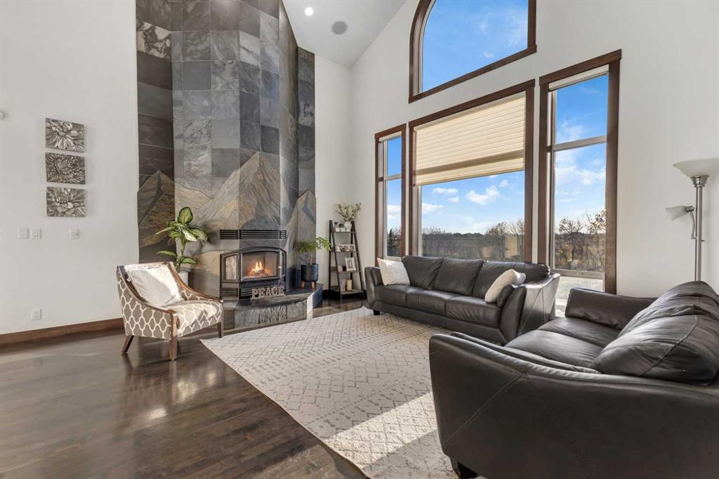 Set on a private GATED, beautifully landscaped property surrounded by open skies and mature trees, this CUSTOM-BUILT ESTATE combines timeless design with thoughtful functionality across 6,000+ sq ft of living space! The long, STAMPED CONCRETE driveway leads to an impressive front entry and a garage large enough to hold everything from collector cars to recreational gear — OVER 2,000 SQ FT OF HEATED SPACE FOR WORK, STORAGE, OR PLAY. Step inside to a grand foyer with soaring ceilings and sunlight spilling through oversized windows. The main floor unfolds in a way that feels both open and intimate, centered around the living room’s striking stone fireplace and two-story windows. The kitchen anchors the space — rich wood cabinetry, granite counters, high-end appliances, and a generous island for gatherings. A connected dining area overlooks the backyard, while the COVERED SUNROOM WITH SKYLIGHTS AND BUILT-IN BBQ extends entertaining outdoors year-round. Down the hall, the main-floor PRIMARY SUITE offers comfort and privacy with a walk-in closet and spa-inspired ensuite. Two additional bedrooms, a full bath, and a convenient powder room make this level perfect for family living. A large mudroom with walk-in closet and a DOG WASH connects directly to the garage — a layout designed for real life. Upstairs, an open riser curved staircase leads to a bright LOFT overlooking the living area below — a relaxed space for lounging, movie nights, or quiet reading by the fireplace. Two generous bedrooms each enjoy their own ENSUITE and walk-in closet, giving this level a boutique-hotel feel that’s ideal for teenagers or guests. Laundry is also tucked neatly upstairs for everyday convenience. The lower level is where the fun begins. A massive REC ROOM with 3-WAY FIREPLACE provides space for games, gym equipment, or movie marathons, while an OPEN OFFICE AREA offers the perfect spot for working from home. There’s also a cozy DEN, TWO MORE BEDROOMS, AND A FULL BATH — plenty of space for extended family or visitors. And then there’s the showstopper: an INDOOR POOL with its own fireplace and lounging area, seamlessly connected to the outdoor yard. It’s a private wellness retreat right at home. Outside, the property feels like a personal resort. Mature trees line the perimeter for privacy, while the open lawn stretches wide with room to play, entertain, or simply breathe. Outbuildings add endless flexibility — storage, workshops, or hobby spaces — and the sports court is ready for friendly competition. Located just minutes from Calgary and Chestermere, this home offers quick access to schools, recreation, and amenities while keeping the peace and quiet of country life. You’re a mere minS away from East Lake School in Chestermere, Safeway and Starbucks, 15 min from East Hills Shopping with Costco, movie theatre, and more, and 15 min to the Foothills Industrial area. It’s a place where every detail feels intentional, every space has purpose, and every sunset reminds you why you live here.