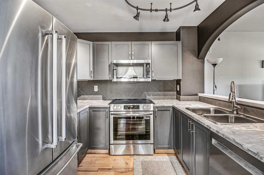 Step inside to find a thoughtfully renovated main floor with an open-concept living and dining area, highlighted by rich hardwood flooring and a cozy gas fireplace. The kitchen has been tastefully updated with new appliances, a refreshed countertop, and refaced cabinets, making it both stylish and functional. A convenient 2-piece powder room completes the main floor, along with direct access to a private deck off the living room, perfect for relaxing or entertaining.