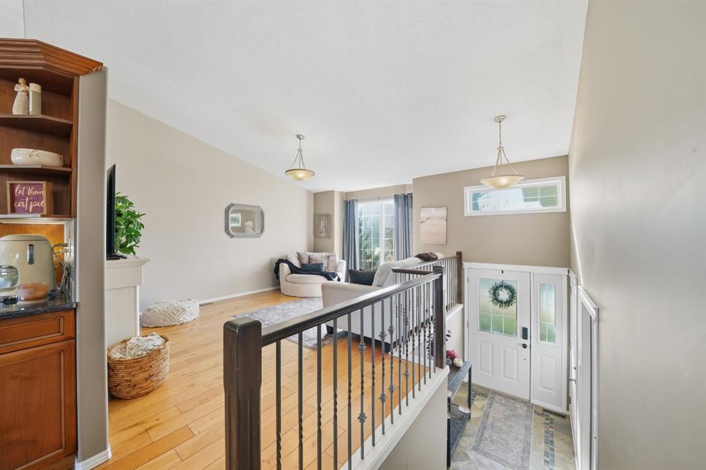 LOVELY modified WALKOUT bi-level backing onto a pretty park in family-orientated Rosedale. Great neighborhood next to a large park with sledding hill and skating rinks. You will fall in love with this very well kept 4-bedroom, 3-bath home. Large foyer with plenty of space for bench and shoes; coat closet and door leading to heated double garage. On the main level you will find VAULTED CEILINGS with a large, south-facing living room - perfect to bask in the sun on those short winter days. The kitchen (also with vaulted ceilings) boasts granite counter tops, island with seating, large pantry and plenty of counter space. A patio door leads to the back deck that’s a perfect place to hang with family and friends. A large bedroom (perfect for two), main floor laundry and family bathroom with jetted tub completes the main level. Up a few stairs you will find a massive primary bedroom with walk-in closet and 3-piece bath . . . Bonus vaulted ceilings as well . . . the perfect place to retreat anytime of day! Downstairs has two more very large bedrooms; one with walk-in closet. Lower third bathroom includes shower; great for the teens! Family room has plenty of space for the family to watch hockey… with a walkout to covered patio area making the basement very bright and airy. The backyard is private; landscaped with lots of room for the kids and dogs to play. Natural gas line into BBQ on upper deck. Back yard has garden shed and kid’s playhouse. With no neighbors behind and path on east side it is such a peaceful place to enjoy family BBQs. Lots of pluses including: underfloor heat in basement, paved back alley; shingles replaced in 2020, fridge in 2021, wash machine in 2023 and dishwasher in 2024. This home shows very well and is a pleasure to view.
