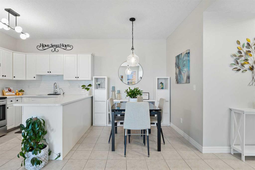 Imagine living a quiet simpler life in downtown Okotoks. This spacious 1,058 sq. ft. 2-bedroom plus den condo offers comfort and style under 9-foot ceilings with in-floor heating throughout. Pets are welcome (dogs up to 25 lbs, with board approval). Meticulously maintained, the unit features numerous upgrades — including paint, new Luxury Laminate Plank flooring, modern light fixtures, updated door hardware, kitchen sink, bathroom fixtures, new blinds, and ceiling fans: two oversized bedrooms and two 4-piece bathrooms. Naturally illuminated by four windows, the primary bedroom connects to a private ensuite through a walk-through closet. The bright, open kitchen offers plenty of white cabinetry and modern quartz countertops, overlooking a spacious dining area and a warm, welcoming living room that easily fits full-sized furniture. A Kinetico water filtration system provides cleaner, great-tasting drinking water. Step outside through the sliding patio doors to your west-facing covered deck — complete with a sun shade and a gas hookup for your BBQ and convenience with a heated underground parking stall (#15) located near the elevator. You will not find a more beautiful and more spacious unit for this fantastic price in all of Okotoks. Call your favourite realtor now to book your showing.
