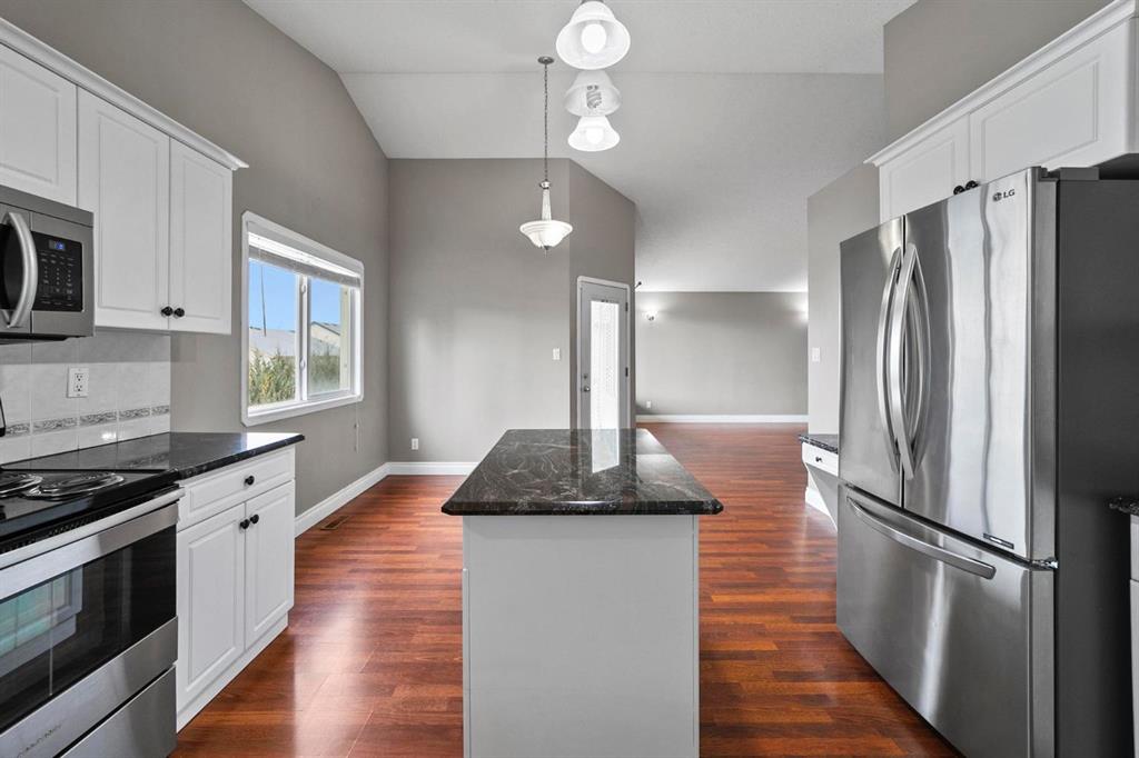 Wonderful split-level home located in the DESIRABLE community of Century Meadows. You will appreciate the grand entrance with vaulted ceilings that leads you up to an open living, dining and kitchen area. The remodelled and upgraded kitchen showcases sleek cabinetry, walk-in pantry, stainless steel appliances, bakers island and a built-in custom design banquette! Also, on the main floor is 2 bedrooms, a full bathroom and a dining room with back deck access. The peaceful master bedroom features a walk-in-closet and a 4pc ensuite with a jet tub. Outside the master is a raised den/office area. Heading down to the lower level you will enjoy the large back entry way/Laundry room which leads you out to a finished double car garage. The lower level presents a perfect sized family room, 2 spacious bedroom and a 3pc bathroom. Outside features a beautifully landscaped yard with a covered deck, space for RV Parking and fence. This move-in ready home will not disappoint! Don’t miss out on this opportunity!