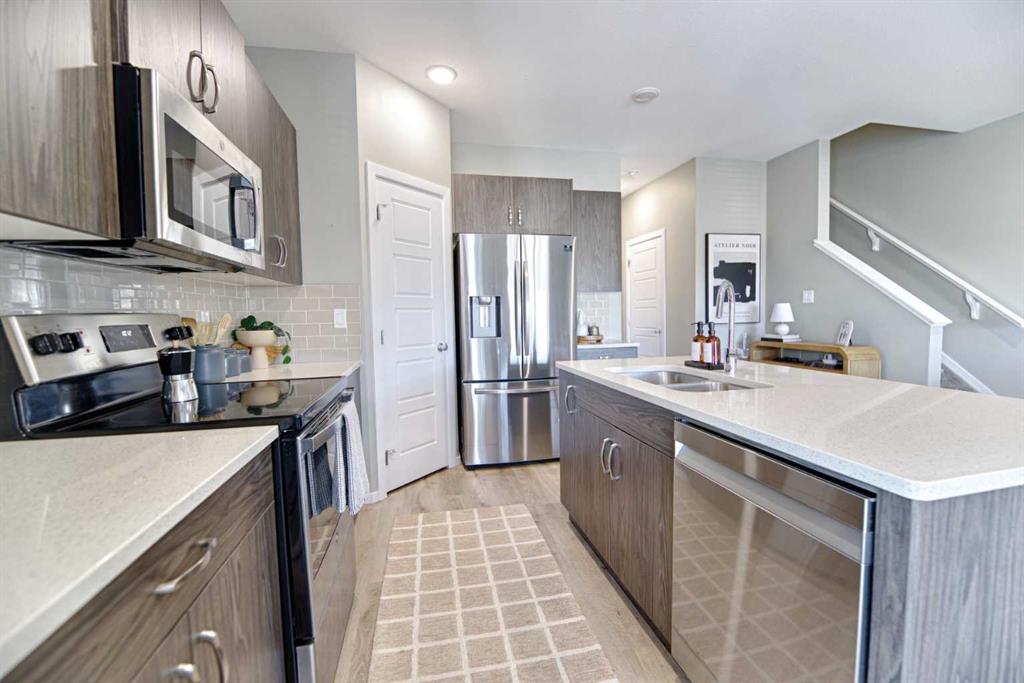 Want all the comforts of owning your own home, without having to do the yardwork? Welcome to 210 Firelight Way W #302, a beautifully maintained 3-bedroom, 2.5-bath end-unit townhome in the sought-after Vista at Copperwood community. Overlooking Firelight Pond and Park, this home blends style, comfort, and convenience. Step inside to discover a bright, open-concept main floor with large windows, hardwood flooring, and a modern kitchen featuring a central island, stainless steel appliances, and a walk-in pantry. The spacious living and dining areas create an inviting atmosphere perfect for both everyday living and entertaining. Upstairs, you’ll find a serene primary bedroom complete with a walk-in closet, 4-piece ensuite, and a private balcony offering peaceful pond views. Two additional bedrooms, another full bathroom, and an upstairs laundry room provide excellent functionality for families or guests. The unfinished basement awaits your personal touch — ideal for a future rec room, gym, or extra storage. Enjoy the comfort of central air conditioning, a heated double-car garage, and a front deck perfect for morning coffee. Located close to parks, playgrounds, walking paths, restaurants, schools, and groceries, and with easy access to the University, this home truly offers the best of Copperwood living.
